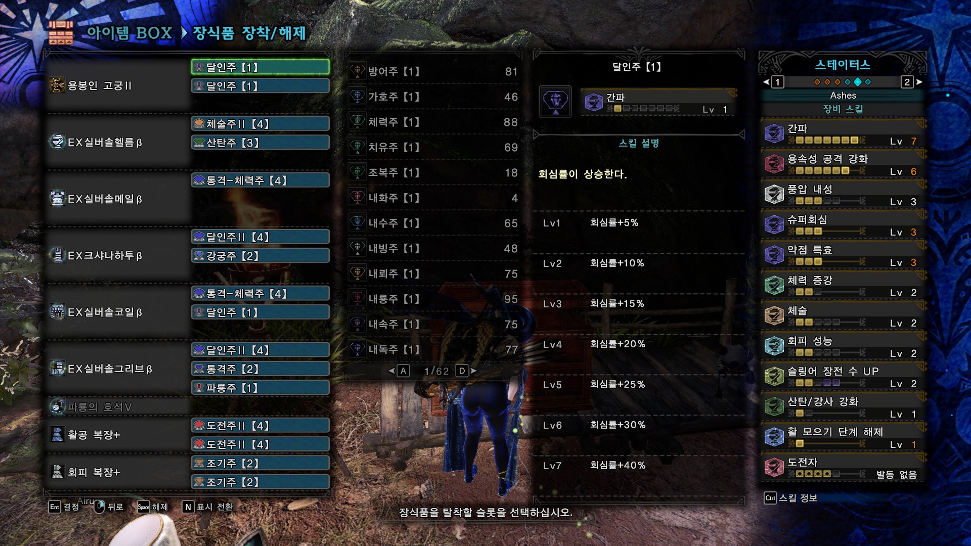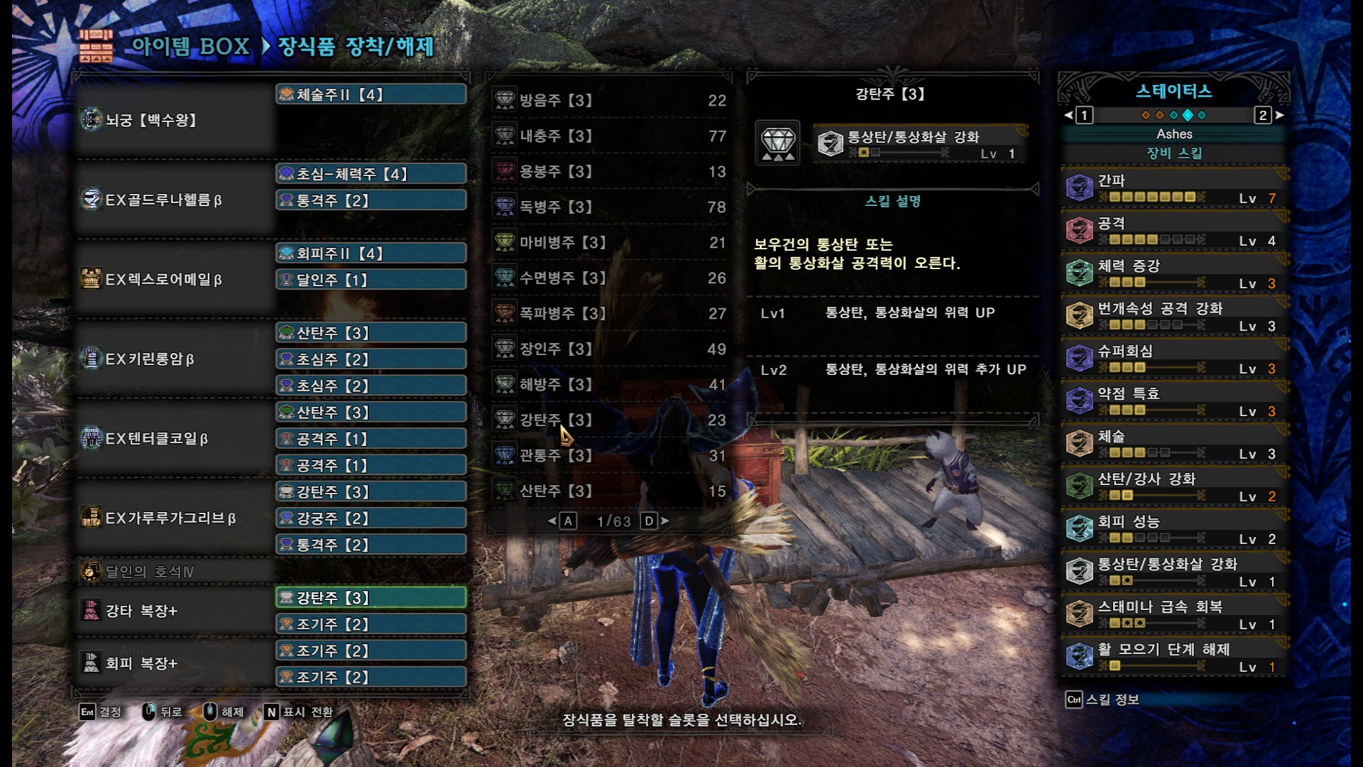 필요 장식주 : 강궁주, 달인주, 초심-체력, 산탄주, 유수주, 통격-체력주, 통격-체력주, 달인주, 달인주, 통격-회피주, 달인주