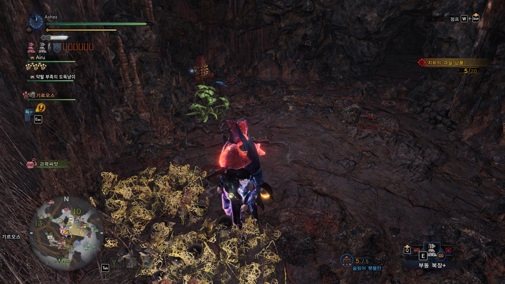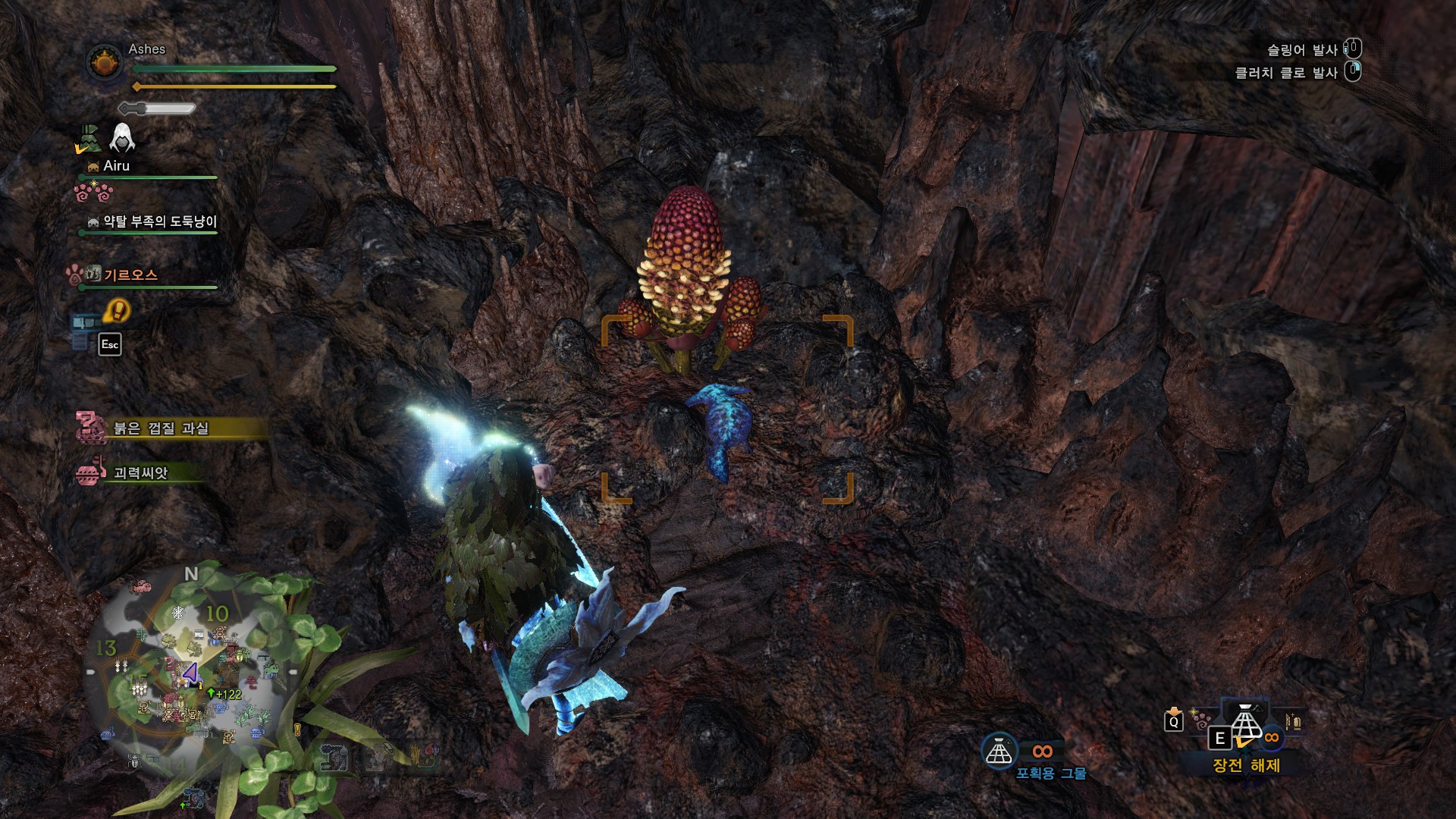 보통 덩굴쪽에 있다가 플레이어가 다가가면 호다닥 위로 올라가는데 항상 저 위치에 있는듯.