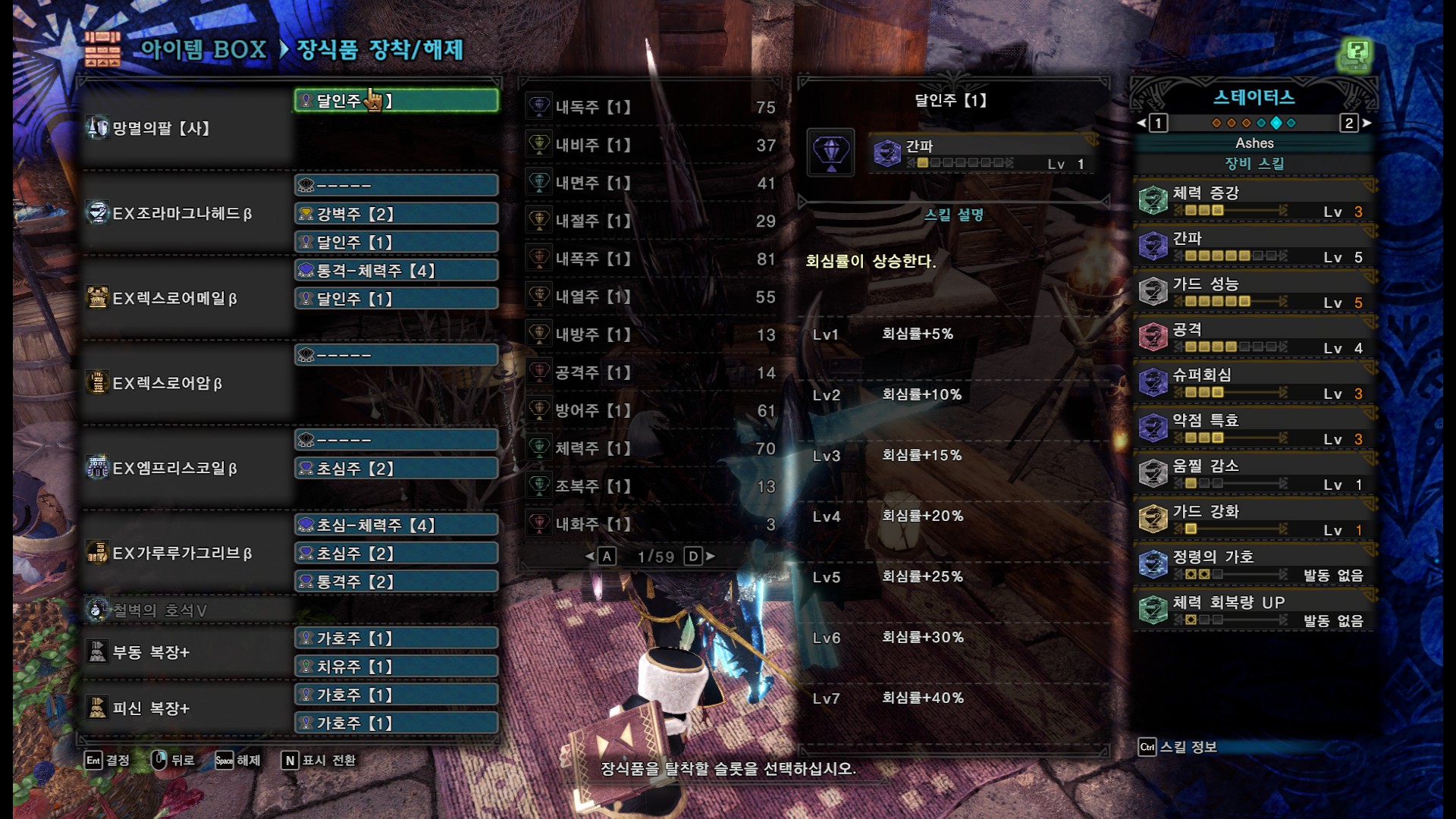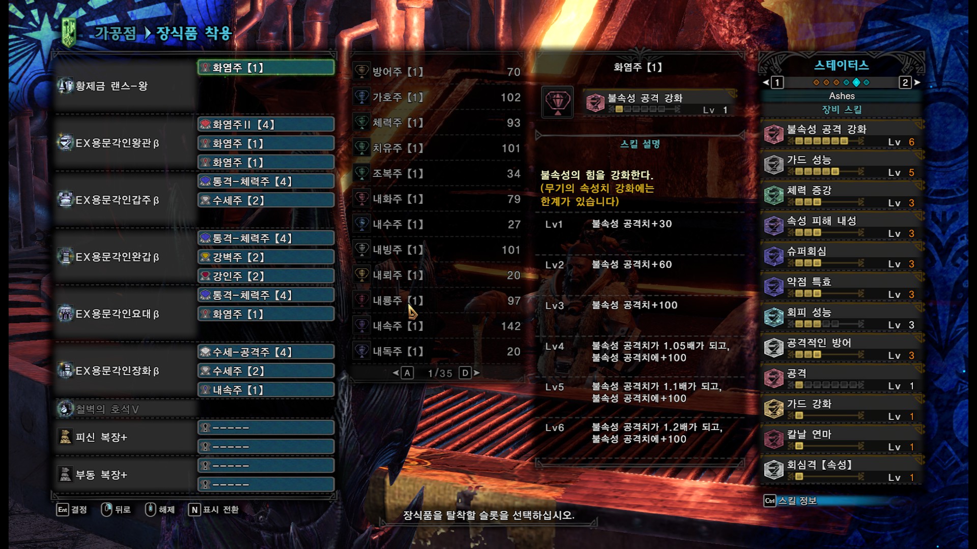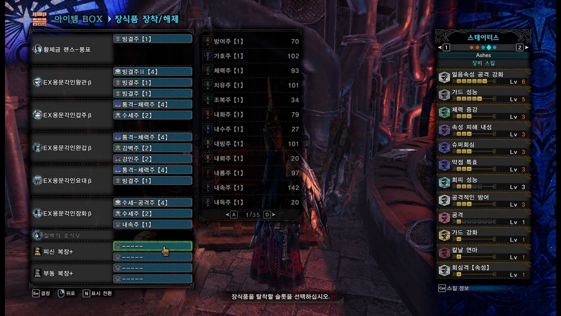 파츠 강화 : 저는 마지막 명등룡 파츠 한개 빼고 전부 속성으로 했습니다