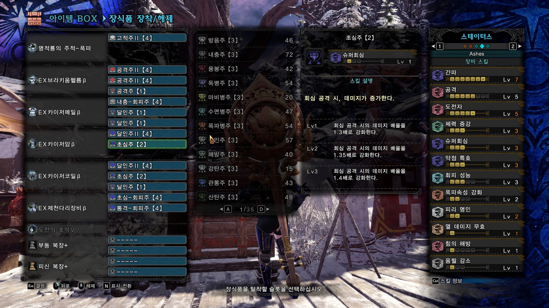 바로 아래의 세팅보다 딜은 떨어지지만 유틸을 챙긴 커스텀입니다.
