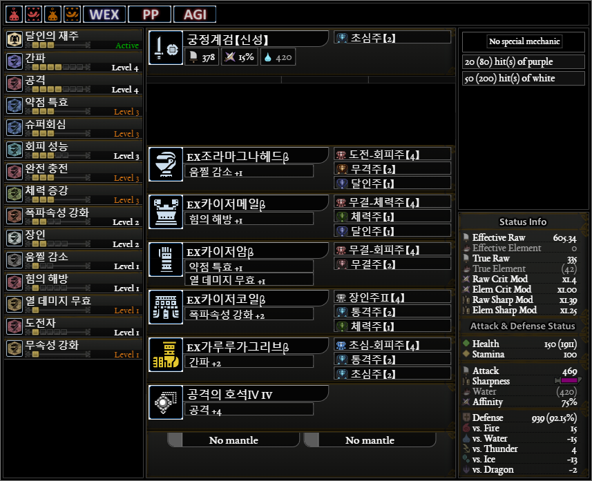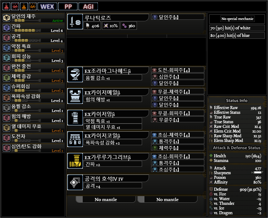 약점기준 회심 : 25 20 5 30(상처 20추가)=80%(상처 100), 도전자, 힘의 해방 발동시 추가회심 발생