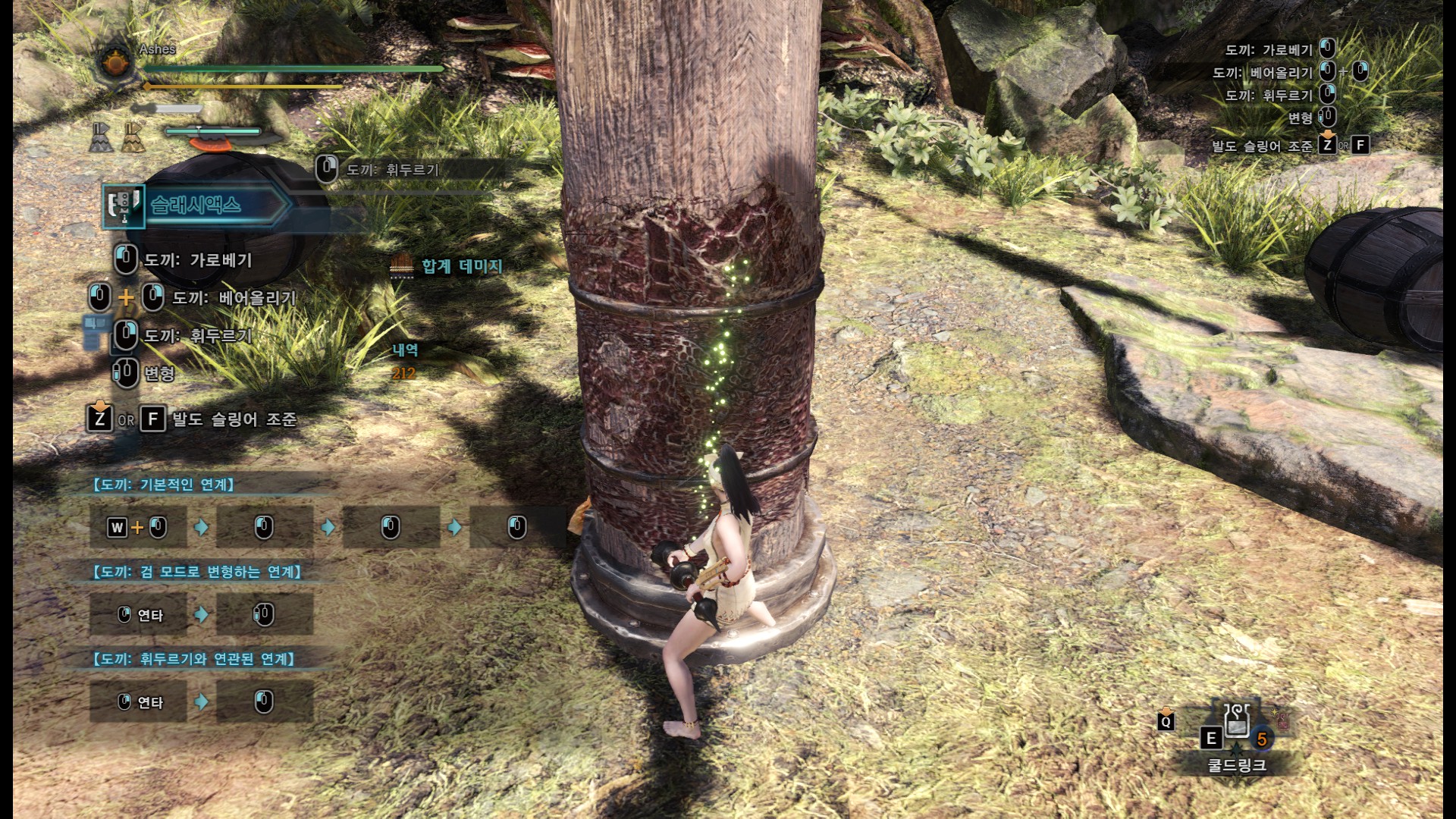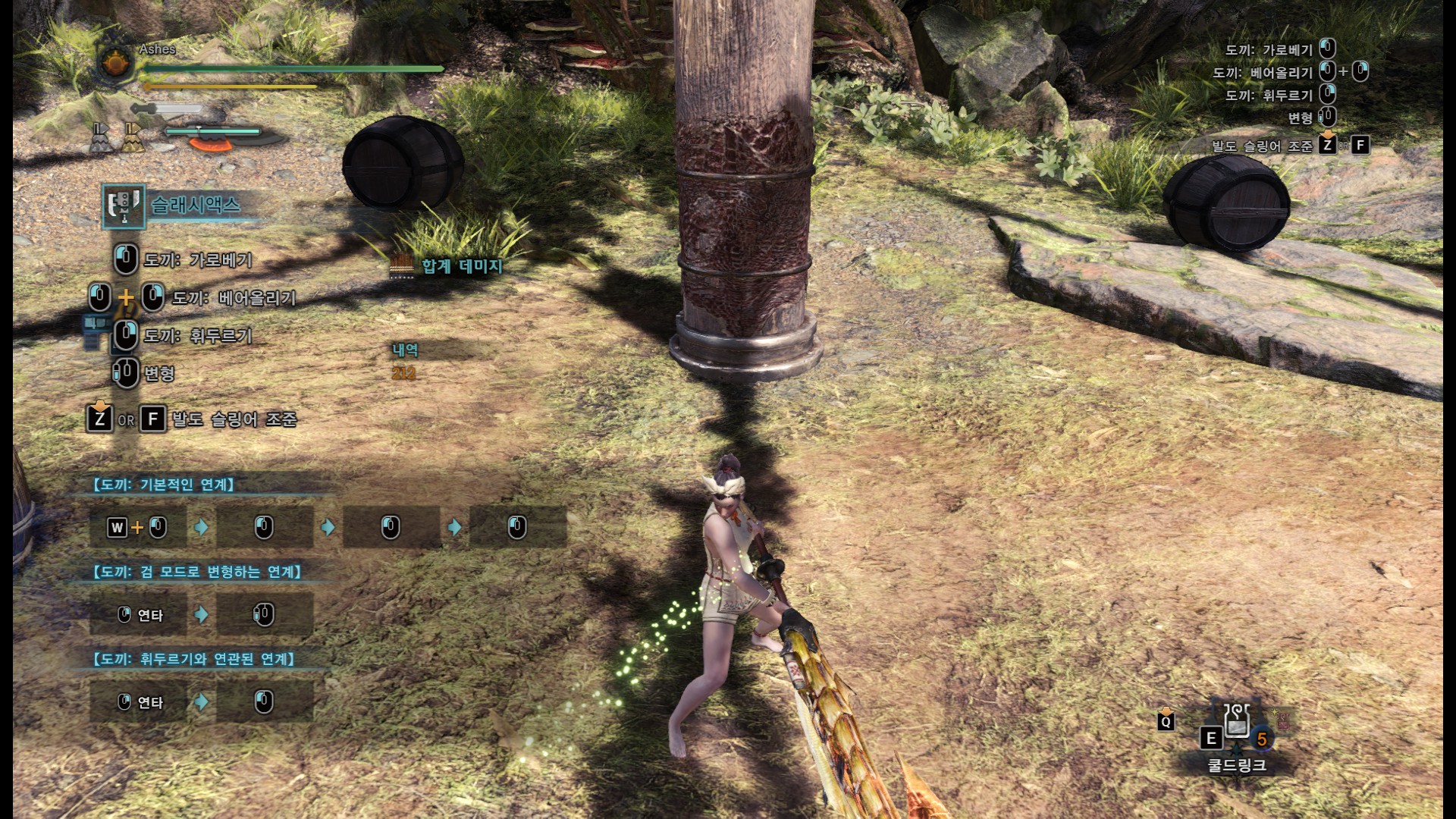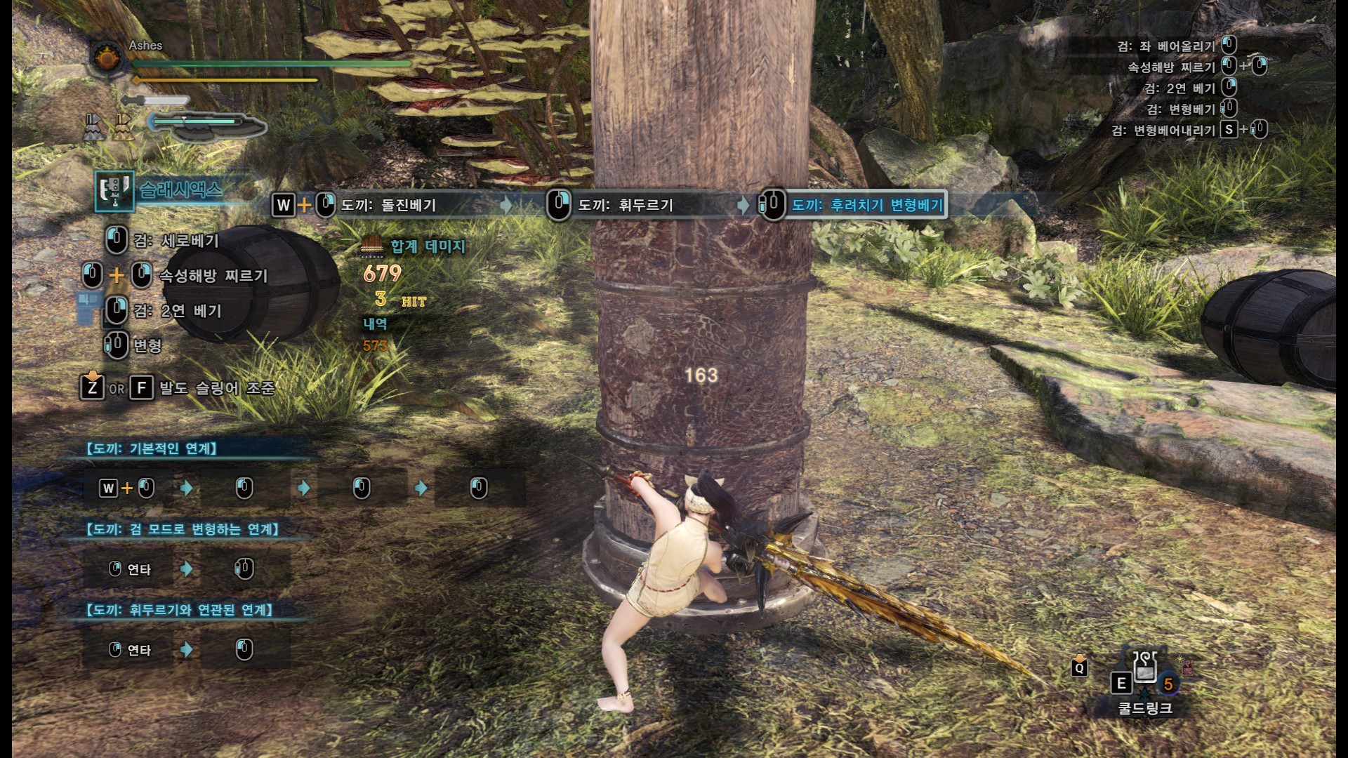 그 위치에서 그대로 붕붕이>도끼강화 막타를 넣습니다. 날보정때문인지 통나무가 튼튼해진건지 모르겠지만 347이 들어가네요. 실전에서는 약 700~800정도의 딜이 들어갈 것 같습니다. 쓸모없는 팁이지만, 도끼강화 막타는 커맨드 입력중에 A나 D를 누르면 좌나 우로 15도씩 틀어서 타격가능합니다.