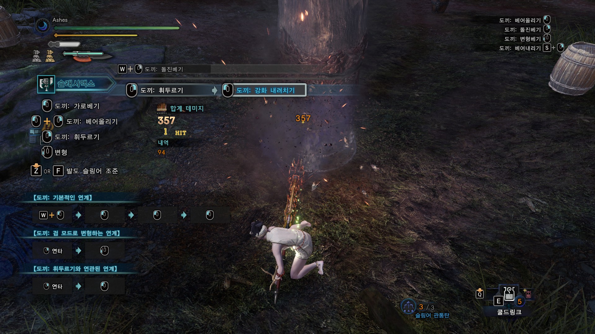 첫타 자체는 도끼강화 막타보다 약하게 뜨지만, 후속타가 자연스럽게 들어가기 때문에 총 데미지 자체는 변형베기 수면참이 높게 나옵니다.