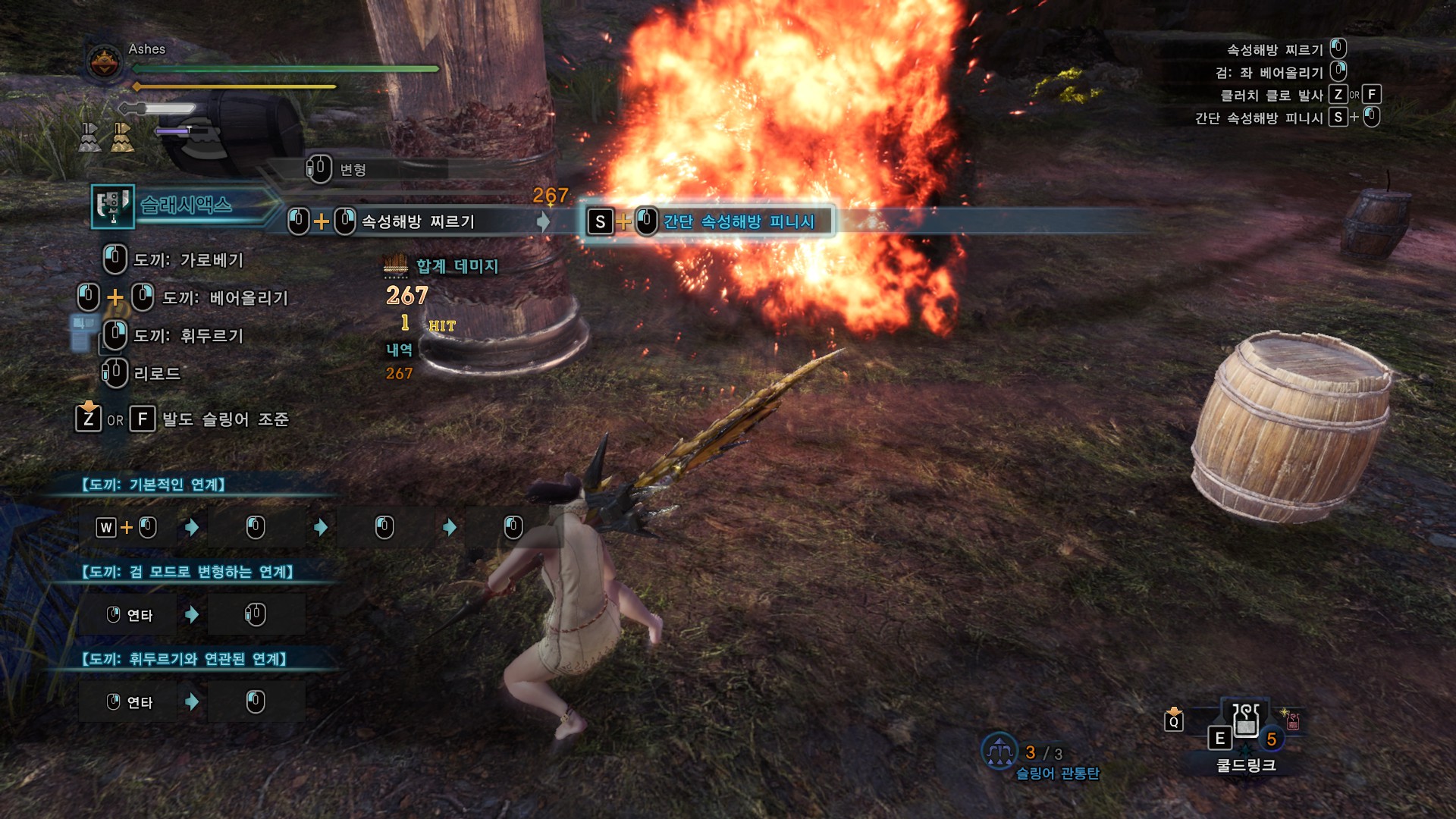 이후 속성해방 찌르기>좌클 몇번 연타>간단 속성해방 피니쉬를 입력하시면 됩니다.