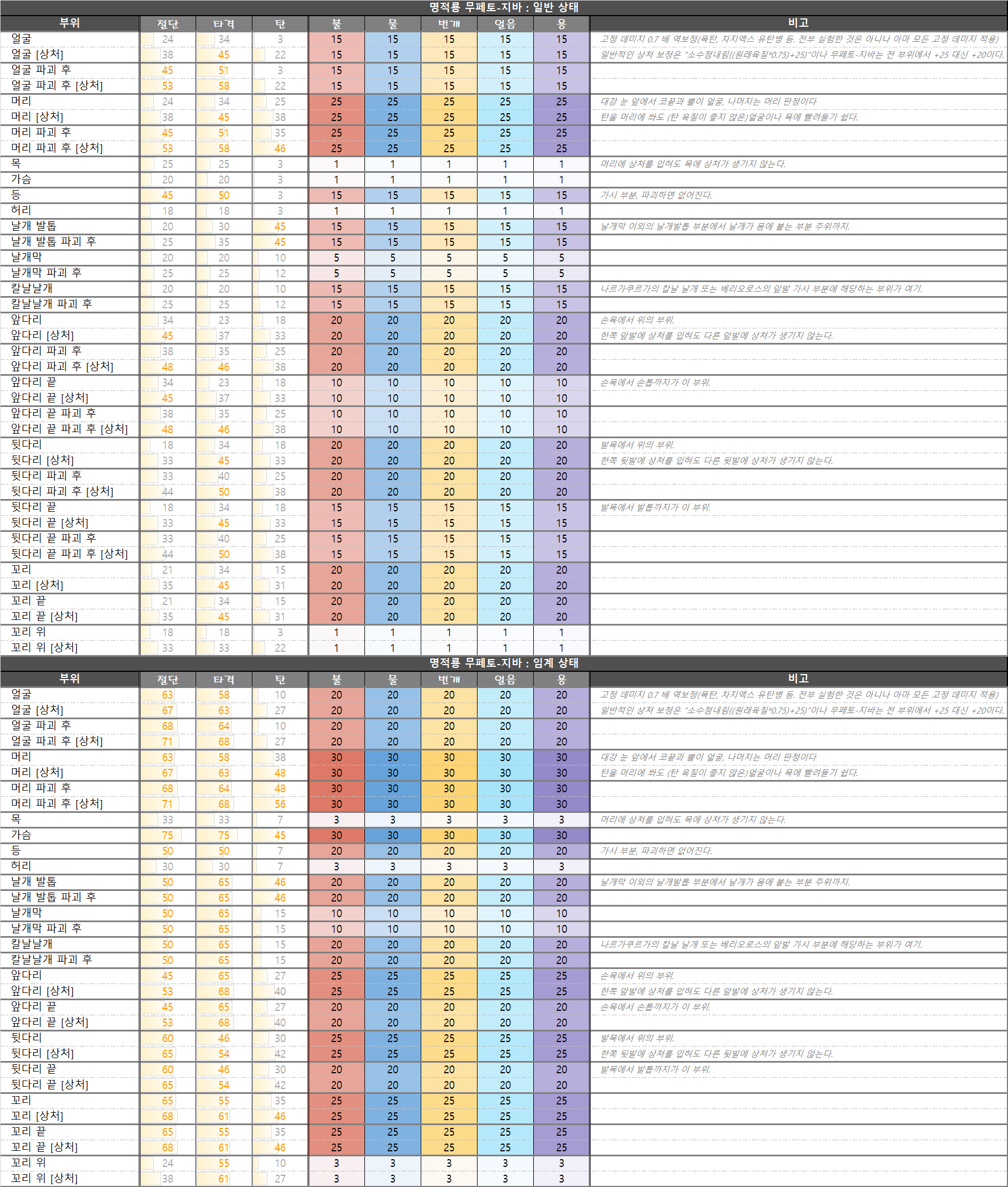 무페토지바 육질표 - 몬스터헌터 갤러리