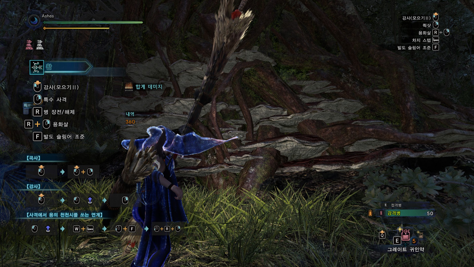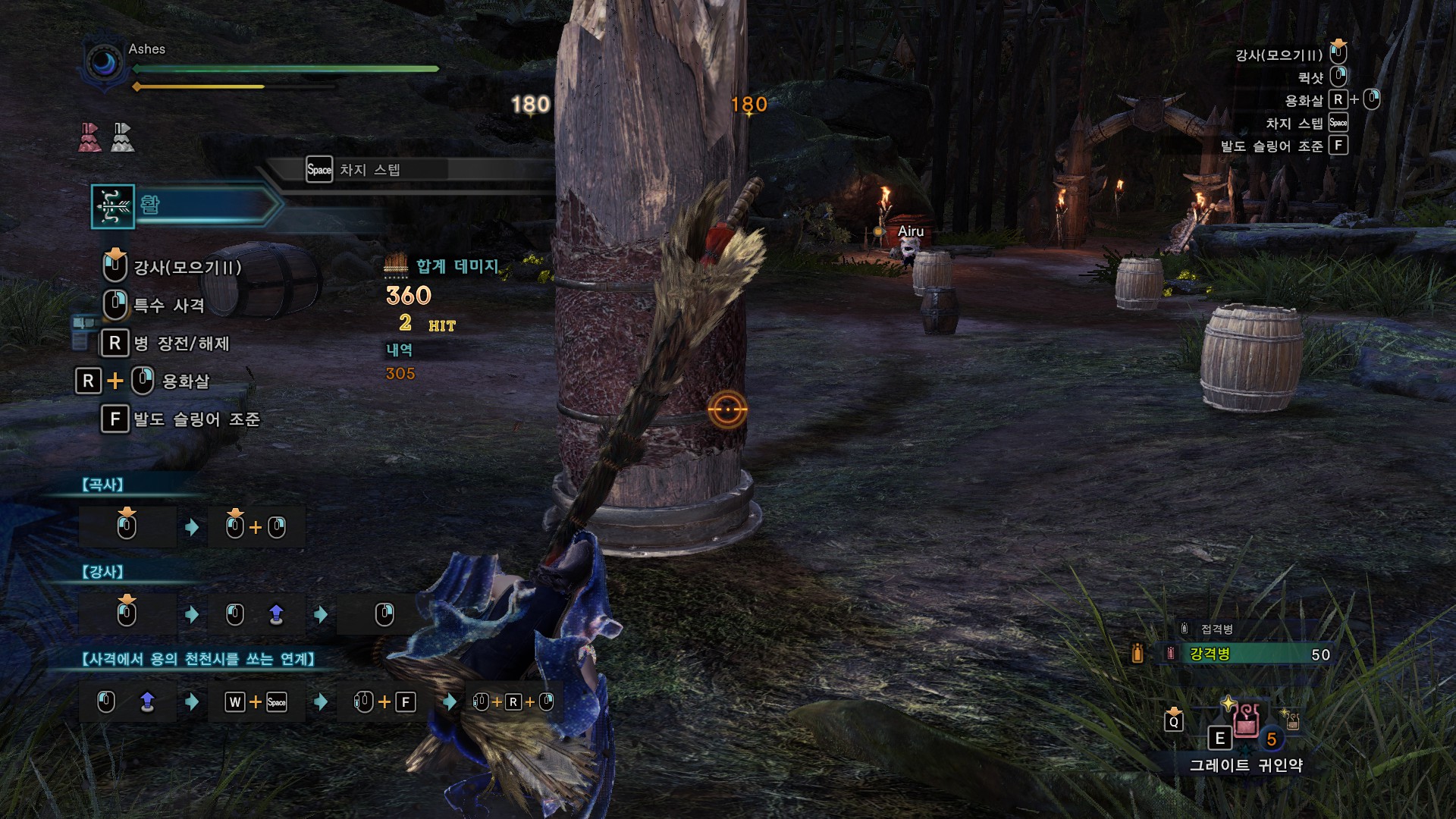 6) 모든 무기에 공통되는 사항인데 몬스터별로 패턴이 나왔을때 안전하게 쓸 수 있는 공격, 피하기만 해야하는 공격 등을 정해놓는 것이 좋다. 특히 활의 강사는 후딜레이가 길기 때문에 강사를 쓸 수 있는 패턴만 정리해놓아도 실력향상에 도움이 된다.