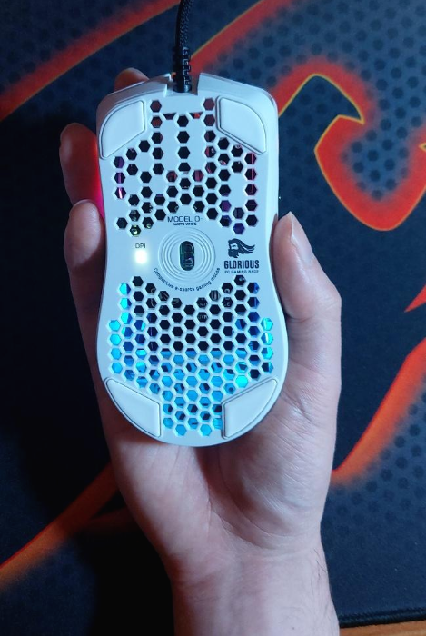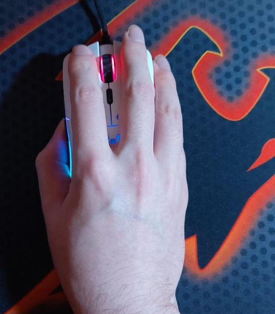 앞서 말했듯이 o-는 크기가 상당히 작습니다. 수치상으로는 다른 마우스들보다 수mm정도씩 작은 수준인데 막상 잡아보면 정말로 작아요. 물론 제 손 크기가 약간 크기도 하지만, 일반적인 남성 기준으로 작게 느낄 것 같습니다. 제 경험상 이렇게 작은 마우스는 제조사 불명의 무명 마우스(?)나 쿠거 미노스x3정도인데, 미노스의 경우 어떻게 잡아도 손이 고통스러워서 바로 방출했던 기억이 납니다. 다행스럽게도 o-는 팜이나 팜클로로 잡았을때 그립감 자체는 우수합니다. 손이 작은 분들이 쓴다면 상당히 만족할 것 같습니다만, 제 경우에는 검지~엄지쪽이 살짝 뜹니다. xm1은 잡았을때 손바닥 전체가 밀착되는 느낌이라서 별 신경 안쓰고 움직일 수 있는데, o-는 상대적으로 손끝에 신경을 더 쓰게 되는 것 같네요.