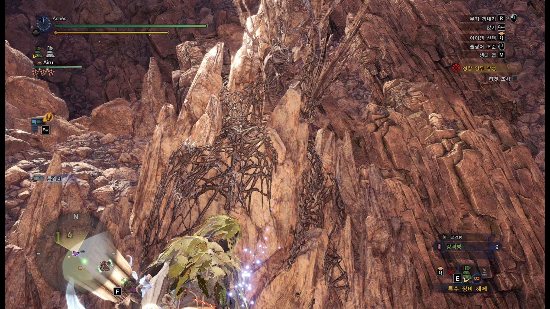 미니맵으로도 확인할 수 있지만 덫 모양 아이콘이 있습니다. 피막이 얽혀있는 바위가 2개 있는데 이 바위를 공격하거나 슬링어로 한대 쳐서 무페토지바를 맞추면 낙석데미지를 줄 수 있습니다.