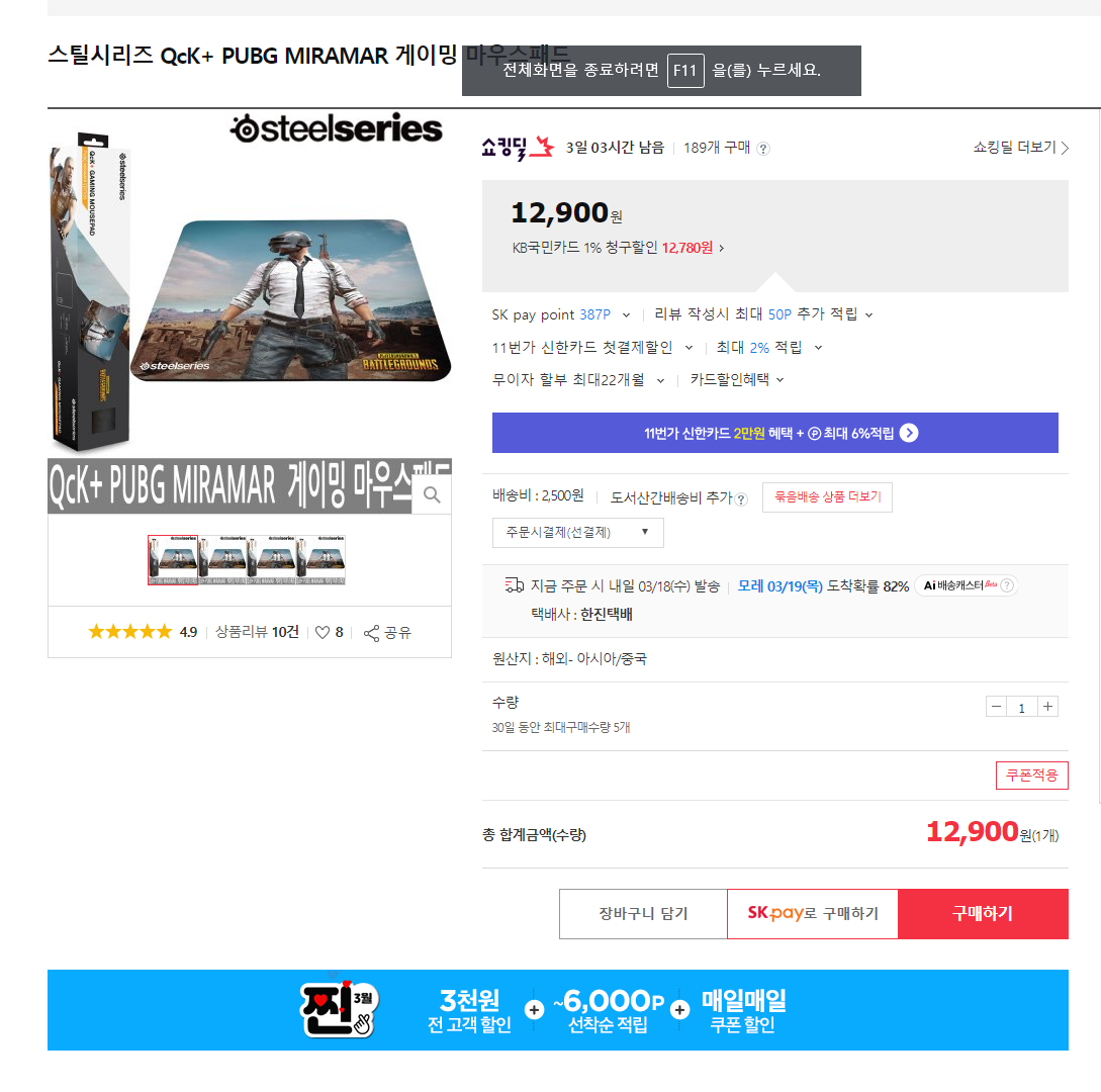 구매수량 본 상품이 쇼킹딜 기간동안 판매된 총 누적 수량 입니다. (최대 180일 주문완료 기준, 일부 카테고리 제외) 단, 판매가격은 본사정책에 의해 일부 변경될 수 있습니다. 레이어 닫기