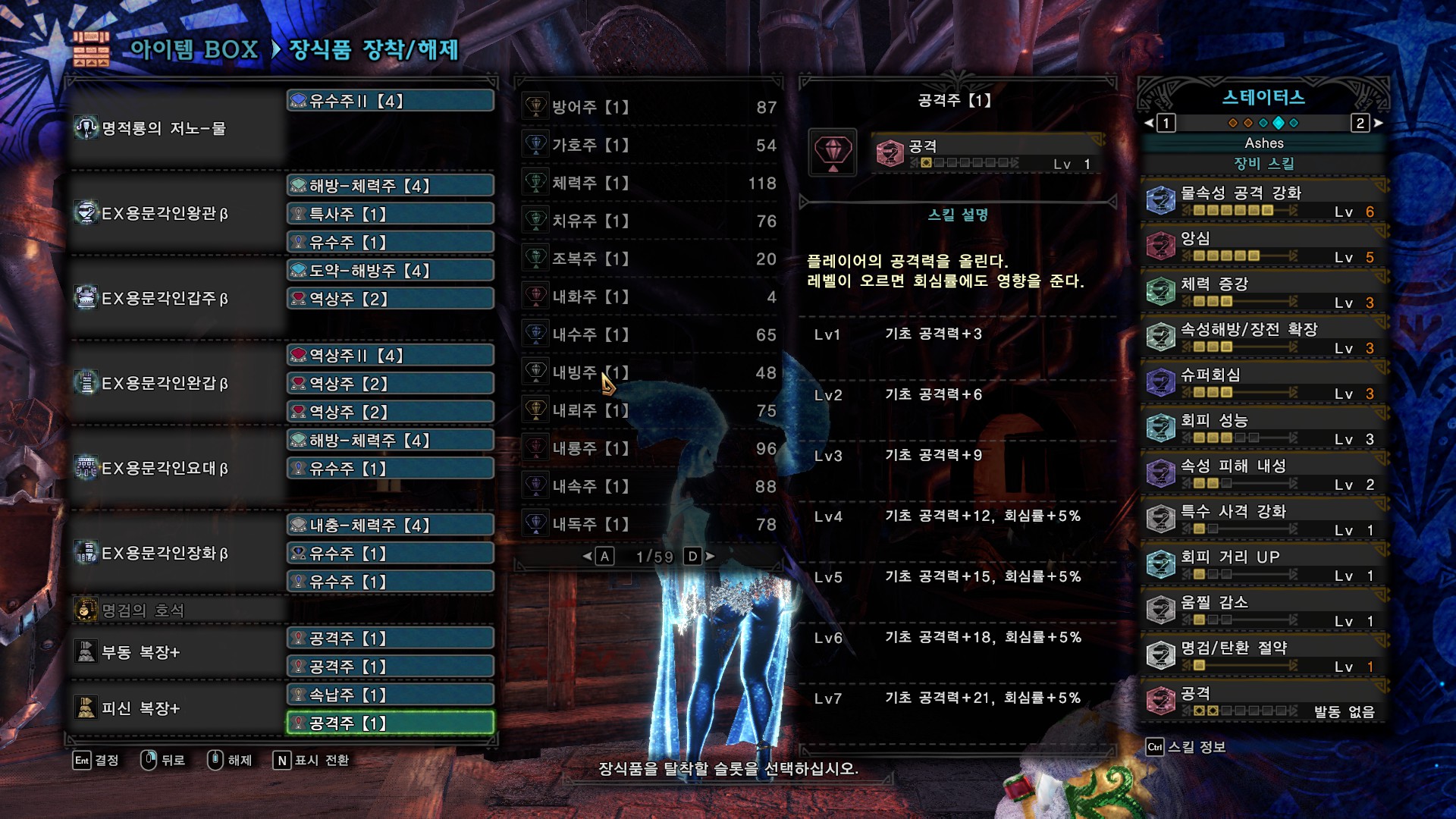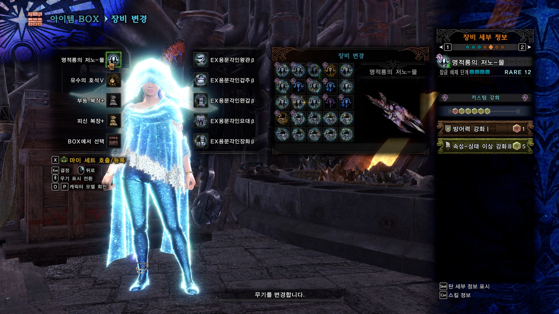 방어구 커스텀과 스킬셋입니다.