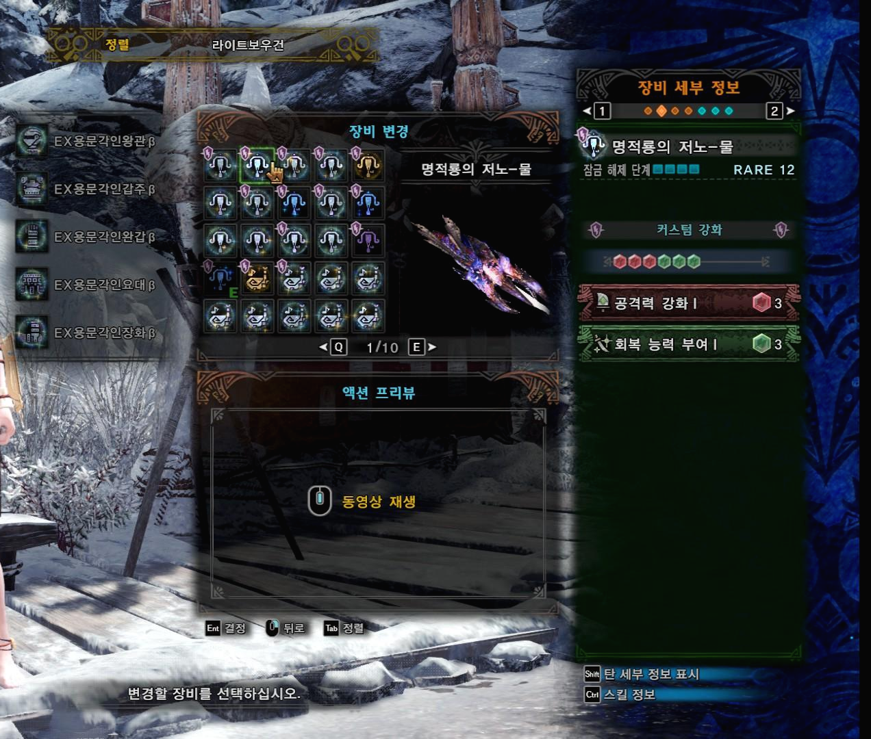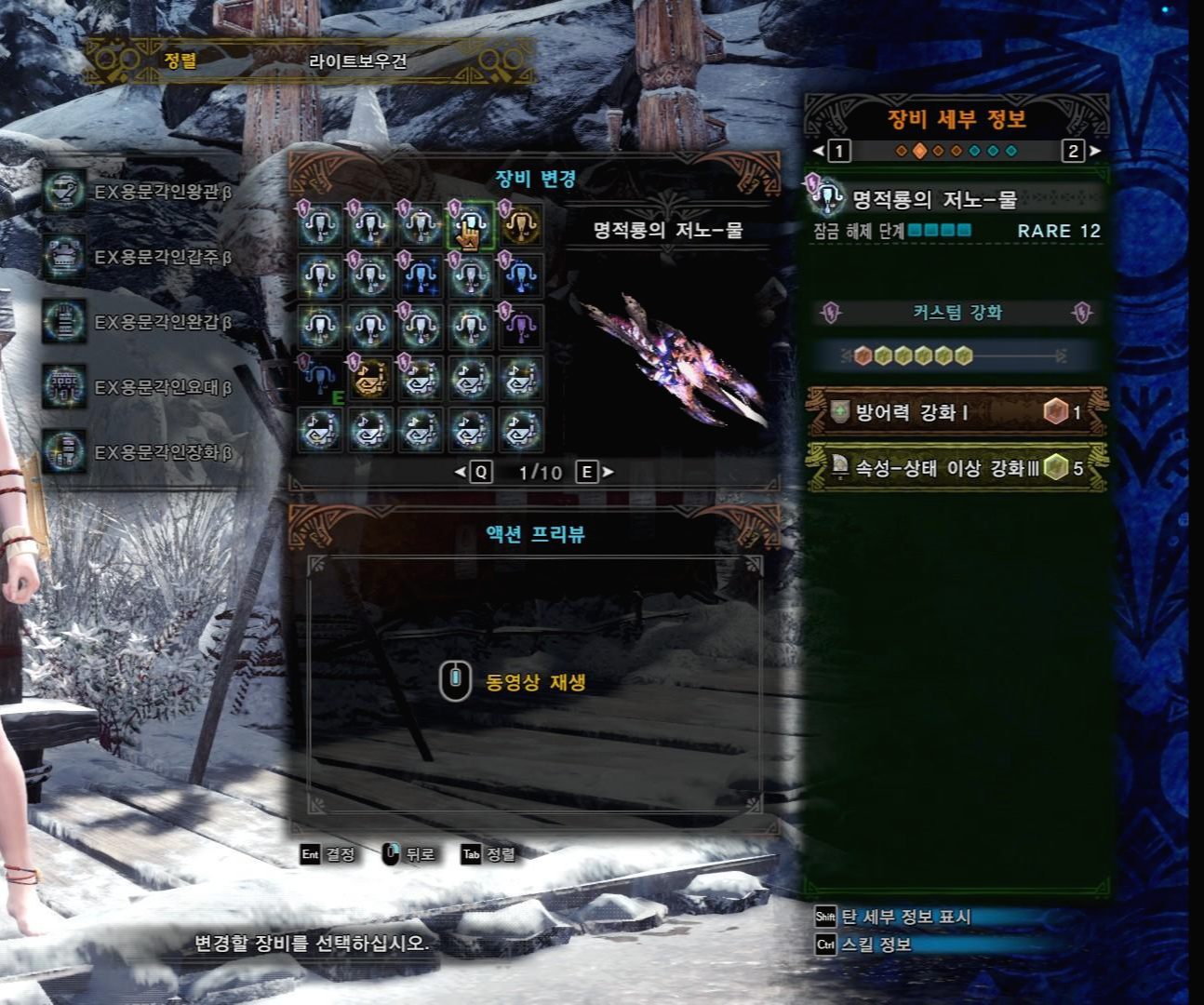 명적룡의 저노-물은 철갑탄, 수속 속사 라보 두가지 커스텀이 필요합니다.