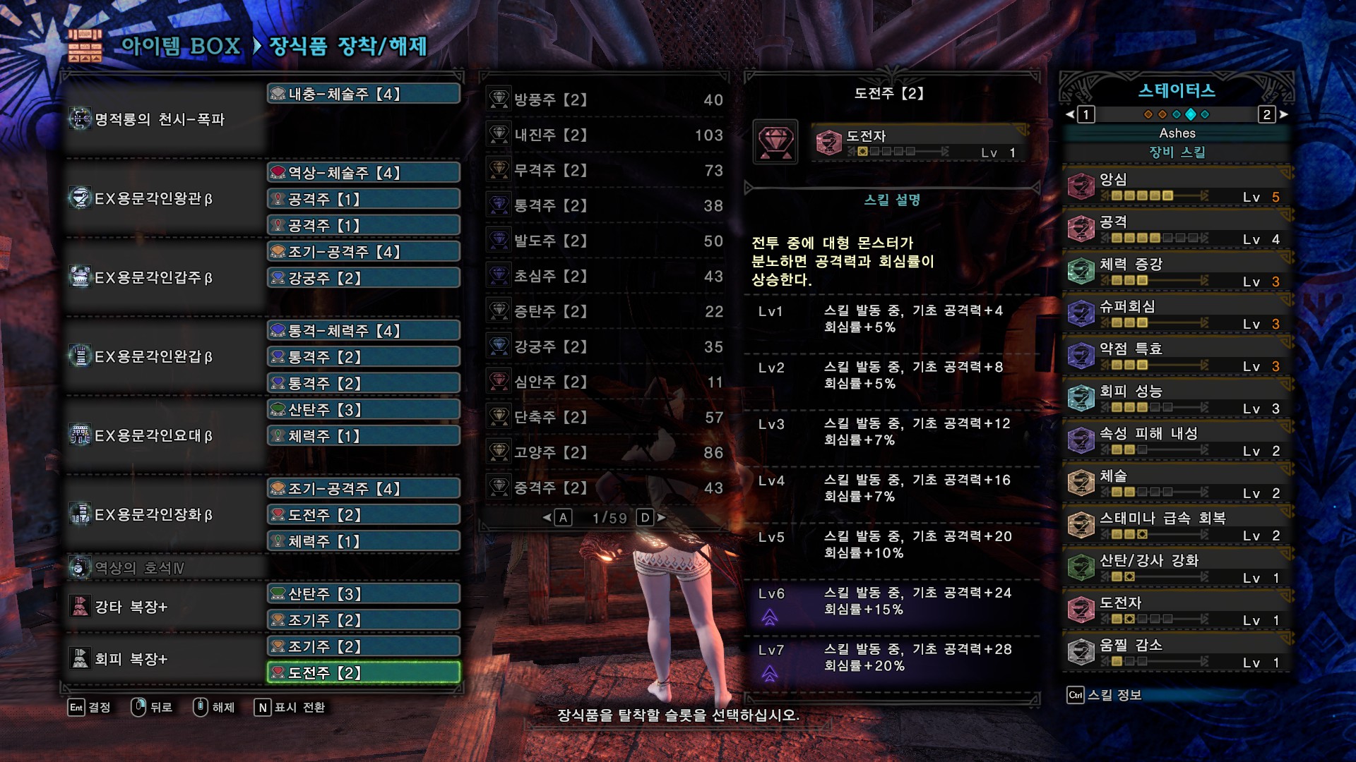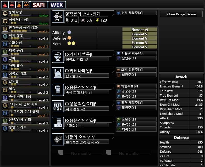 무페토 각성활의 경우 용문3셋, 라비나2셋, 속성강화를 다 끝내고 나면 딜 자체는 다 비슷비슷합니다. 위 커스텀은 체3 외에 회피성능과 정령의 가호를 챙겨서 ...아마도 다른 커스텀들보다는 덜 죽을겁니다. 스샷 스킬셋 하단에 잇는 정령의 가호1은 커강에 있는 방어1때문에 붙어있습니다.
