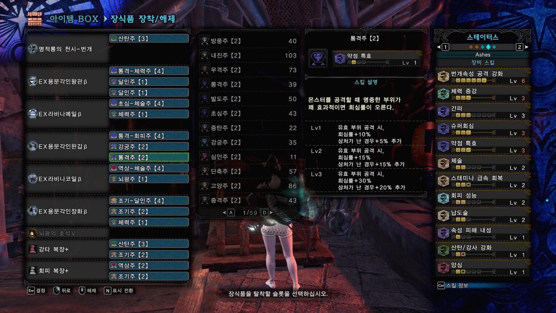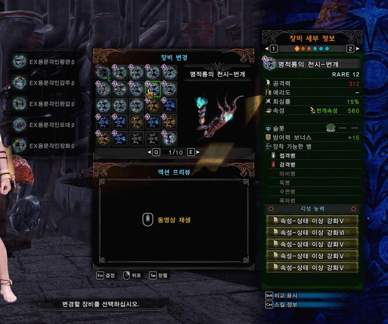 무페토 속성활들은 슬롯과 스펙이 동일하기 때문에 호석 교체, 1레벨 속성 장식주 한개씩만 교체해서 사용하시면 됩니다.