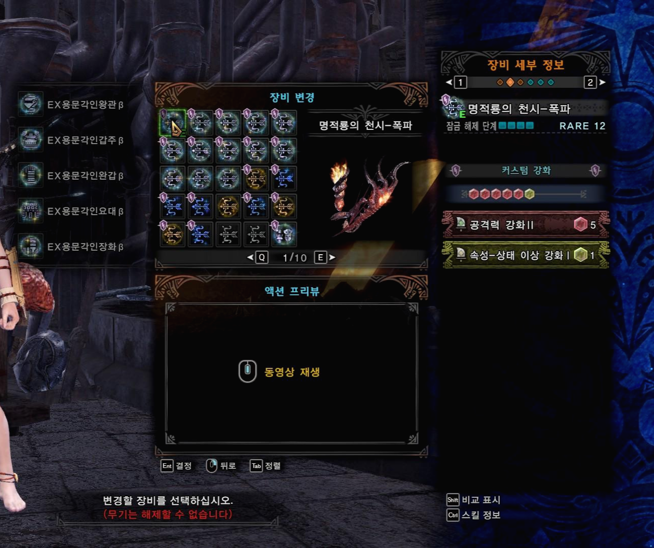 커스텀 강화는 공격력 강화1, 속성강화1