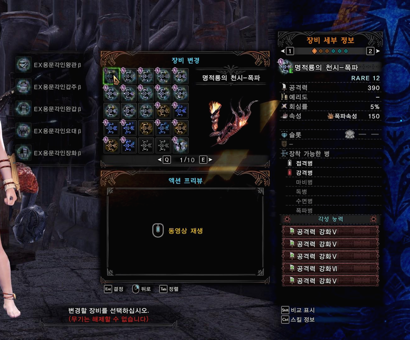 다음은 깡공 폭파활 커스텀입니다. 모멸기간테 잡을때 쓰면 좋고, 범용으로 쓸수도 있지만 다른 속성활들보다는 데미지가 약하게 나옵니다.