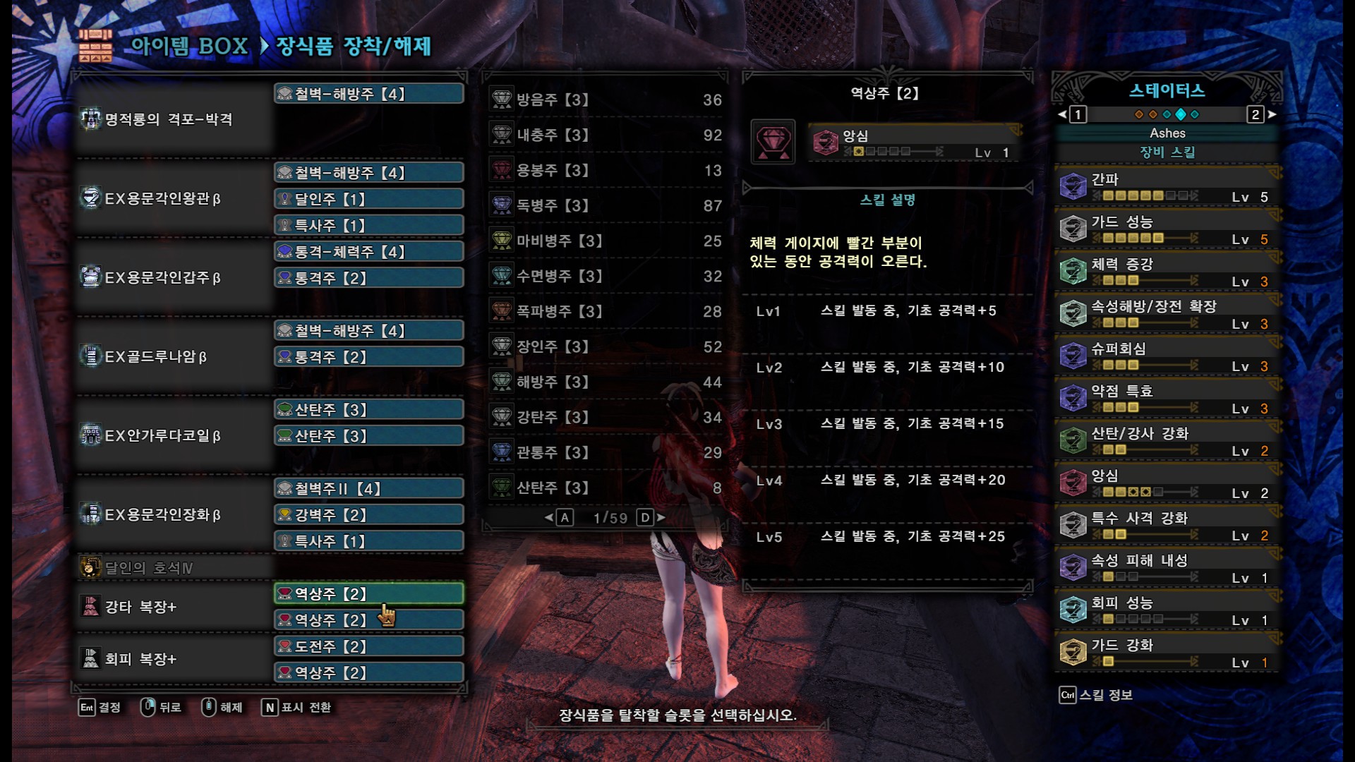 다음은 용문5셋과 앙심4를 챙긴 커스텀입니다.