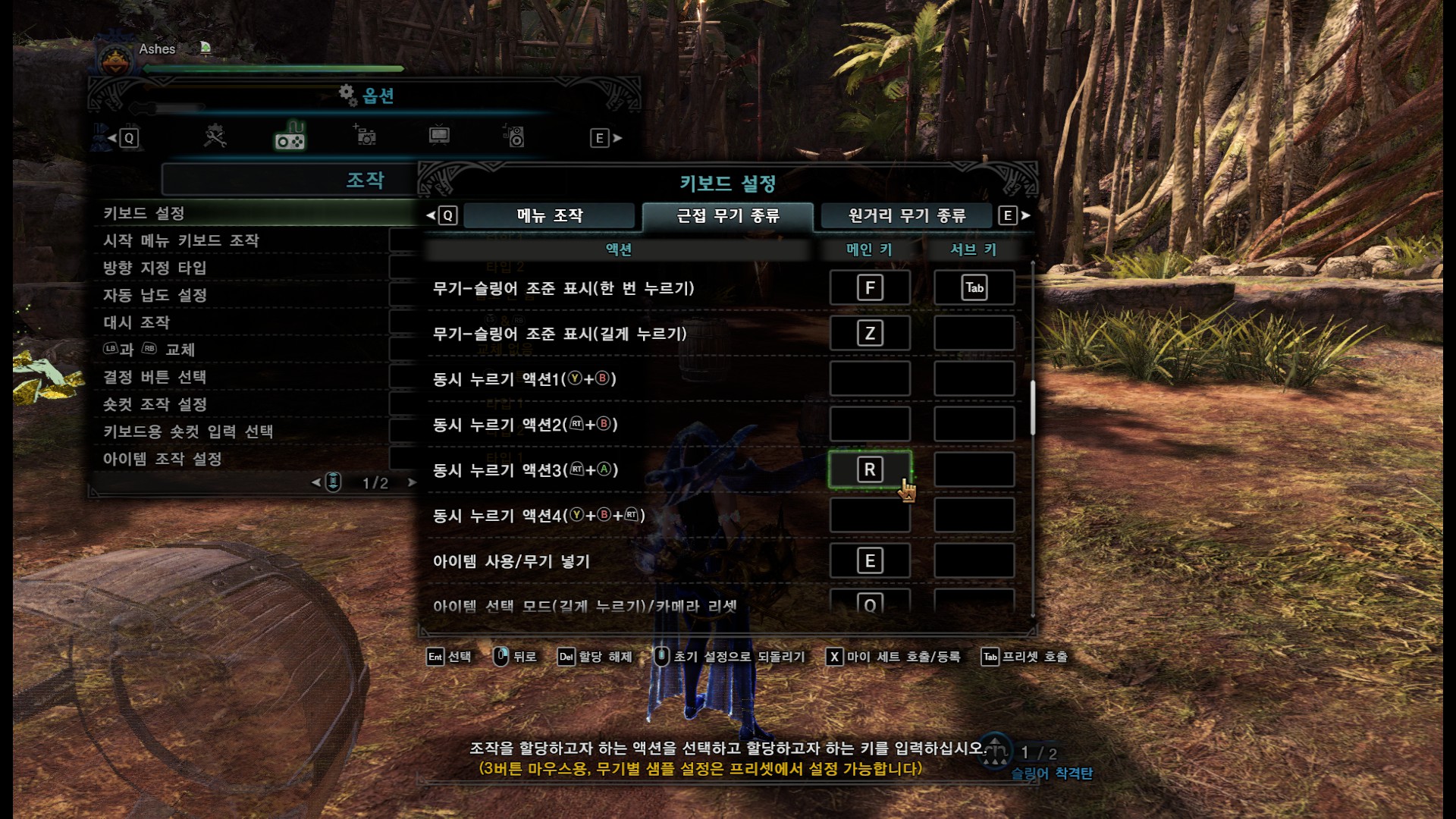 그래서 가드+슬링어 조준+s+좌클을 동시에 눌러서 써야 하는데, 이게 써보면 알겠지만 손가락이 불편해요. 그 가드 백스텝의 조작을 약간이나마 해소할 수 있는 방법이 있습니다. 바로 동시 누르기 액션3을 이용하는겁니다.