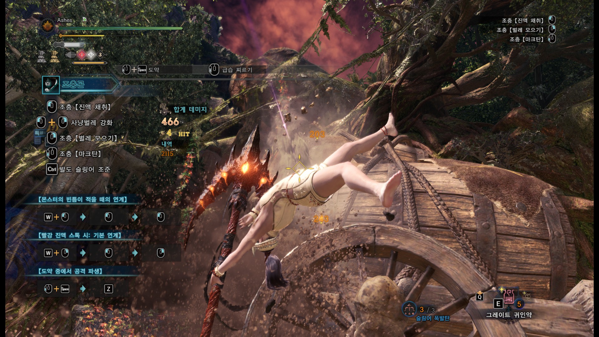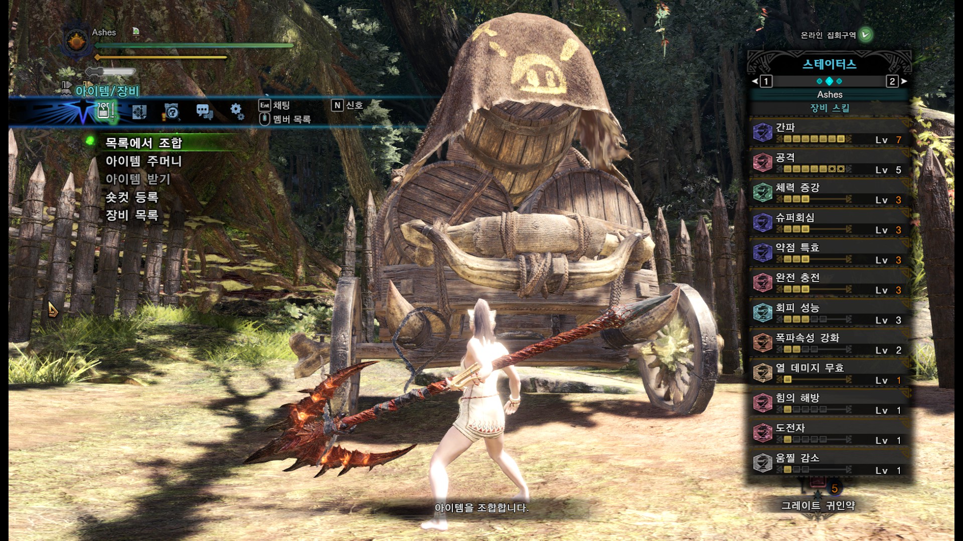 무기 커강은 공격,회복, 각성은 사냥벌레[발동], 예5, 공655