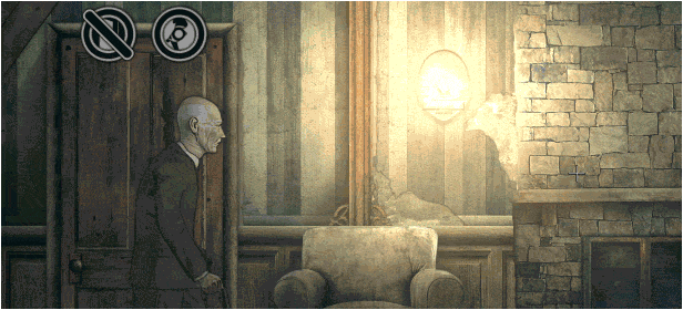 마우스로 진행하는 2D 추상 퍼즐 어드벤처 게임 속에서, 어둡고 분위기 있는 세계를 지나갈 수 있도록 노인을 안내하세요.