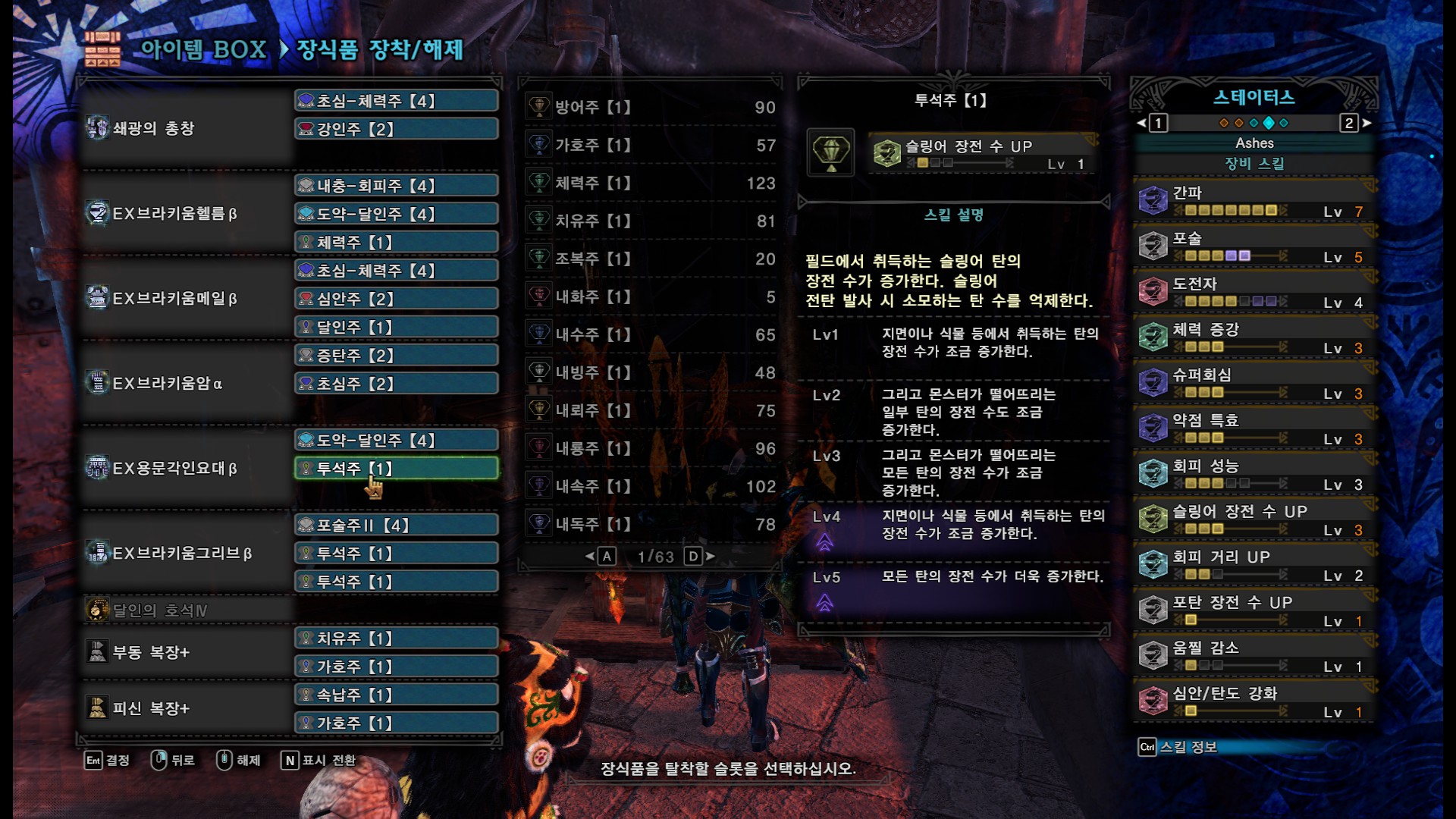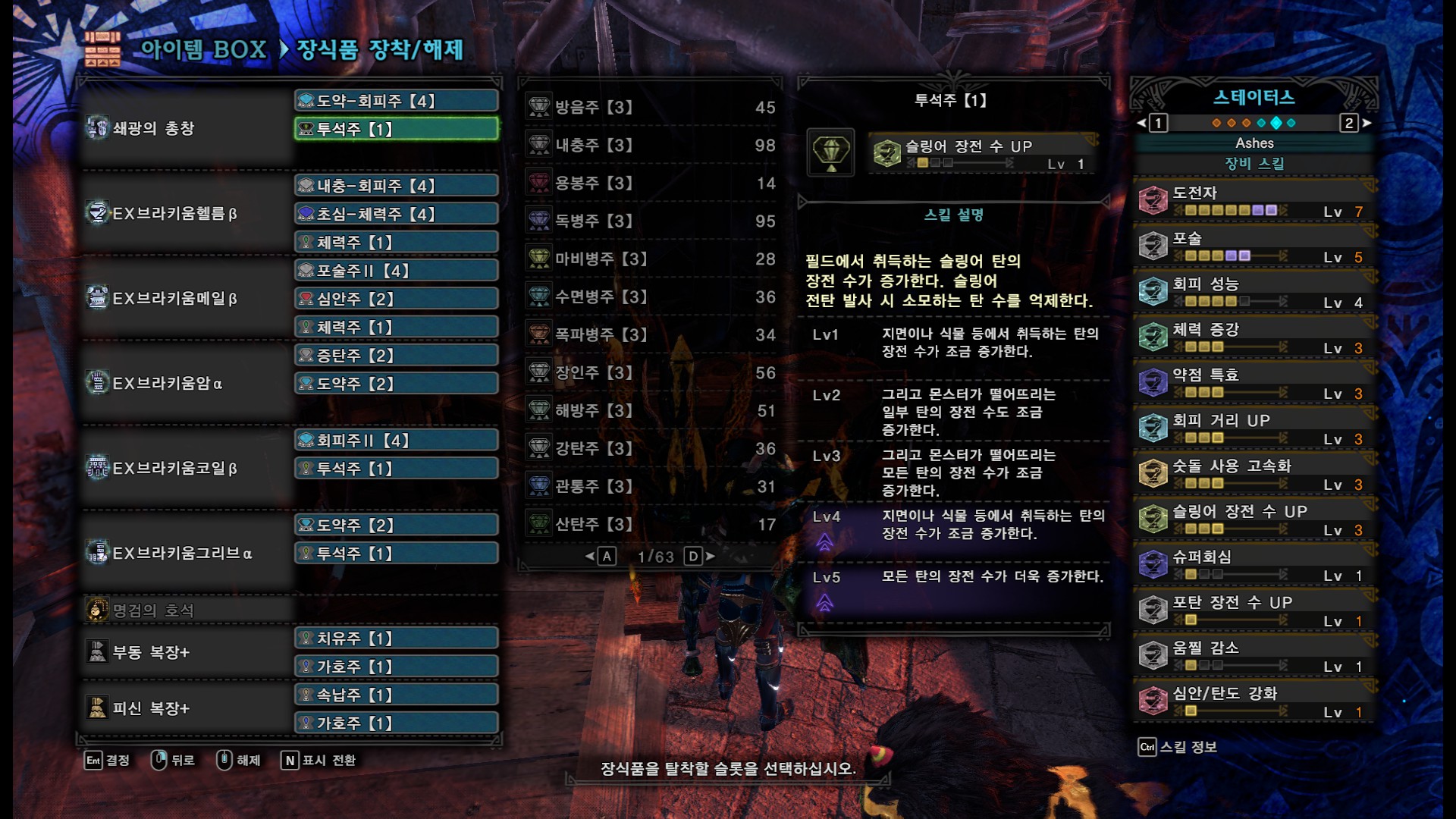 솔플용으로 만든 커스텀이라서, 멀티에서는 지시주 대신에 내충주가 섞인 복합 장식주를 장착해서 쓰세요.
