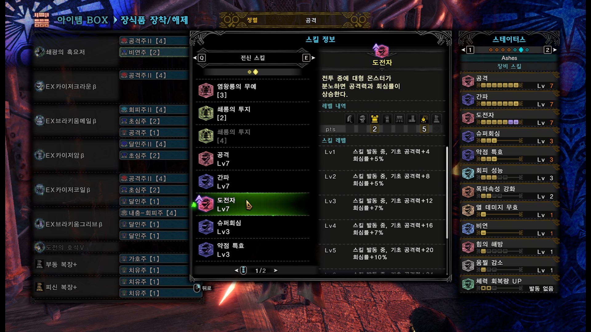 쇄광의 흑요저+도전자7, 공4, 비연, 체증3 커스텀