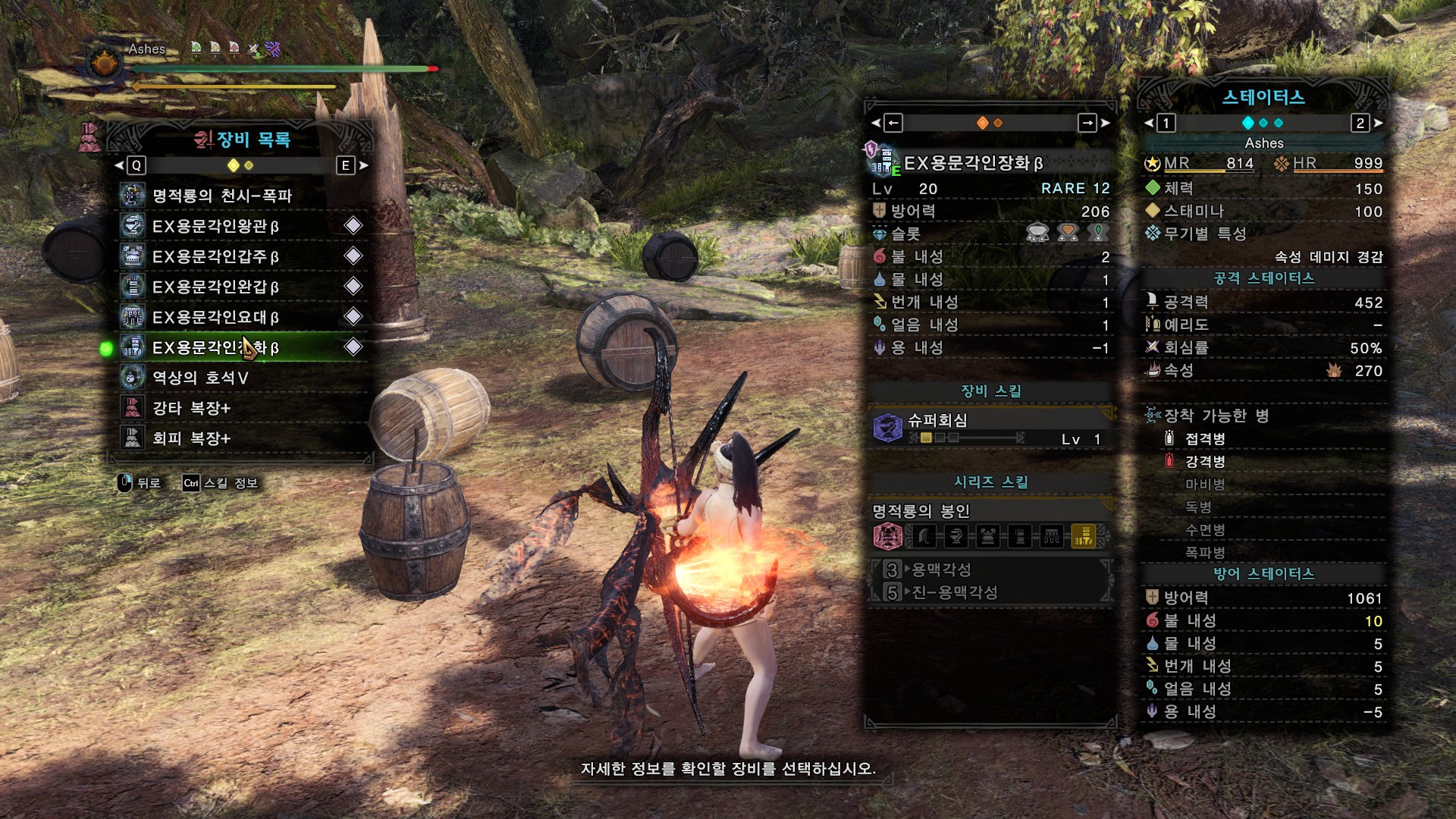 방어구는 동일하게 용문각인 5셋으로 착용