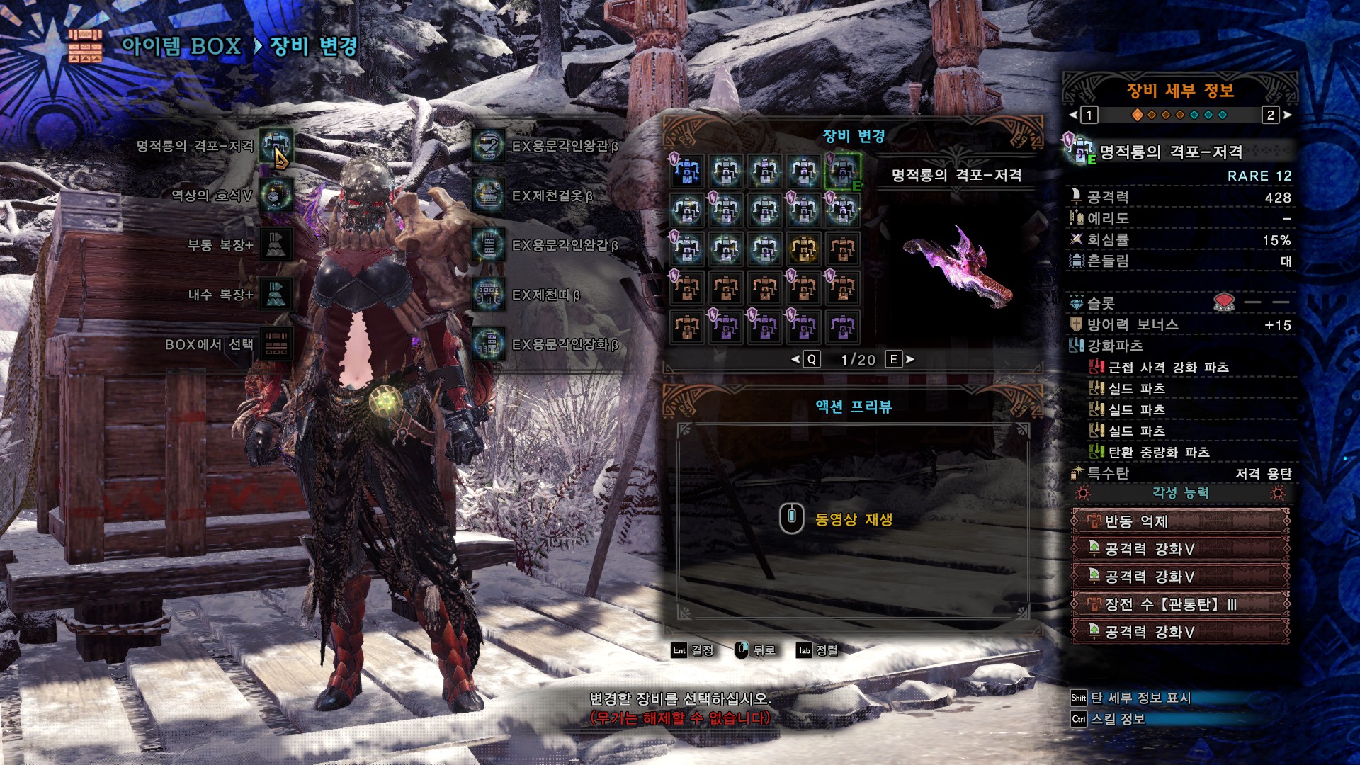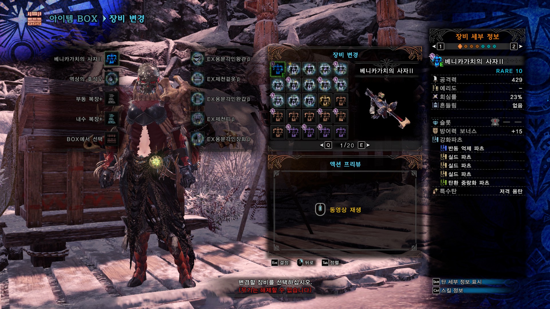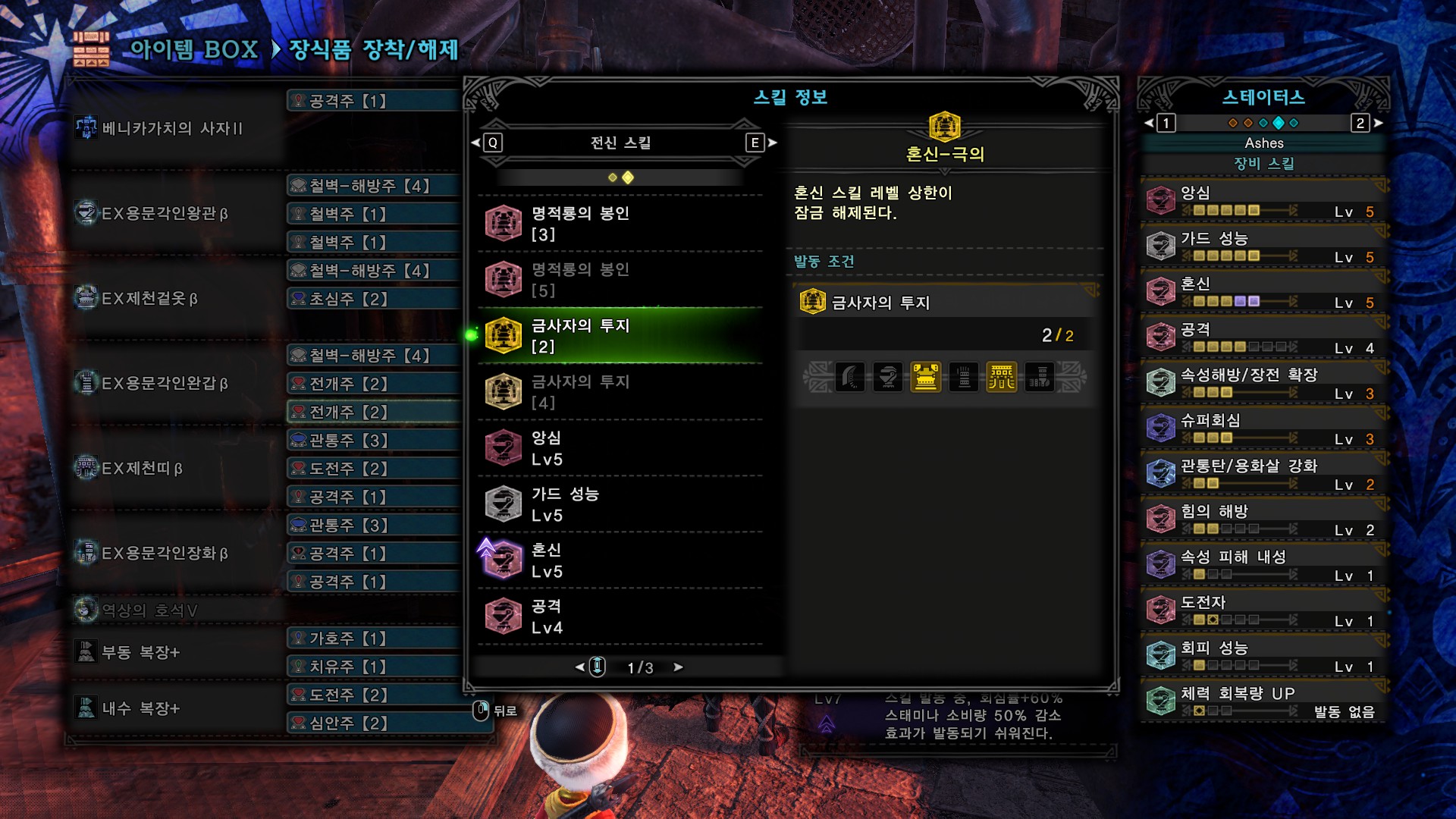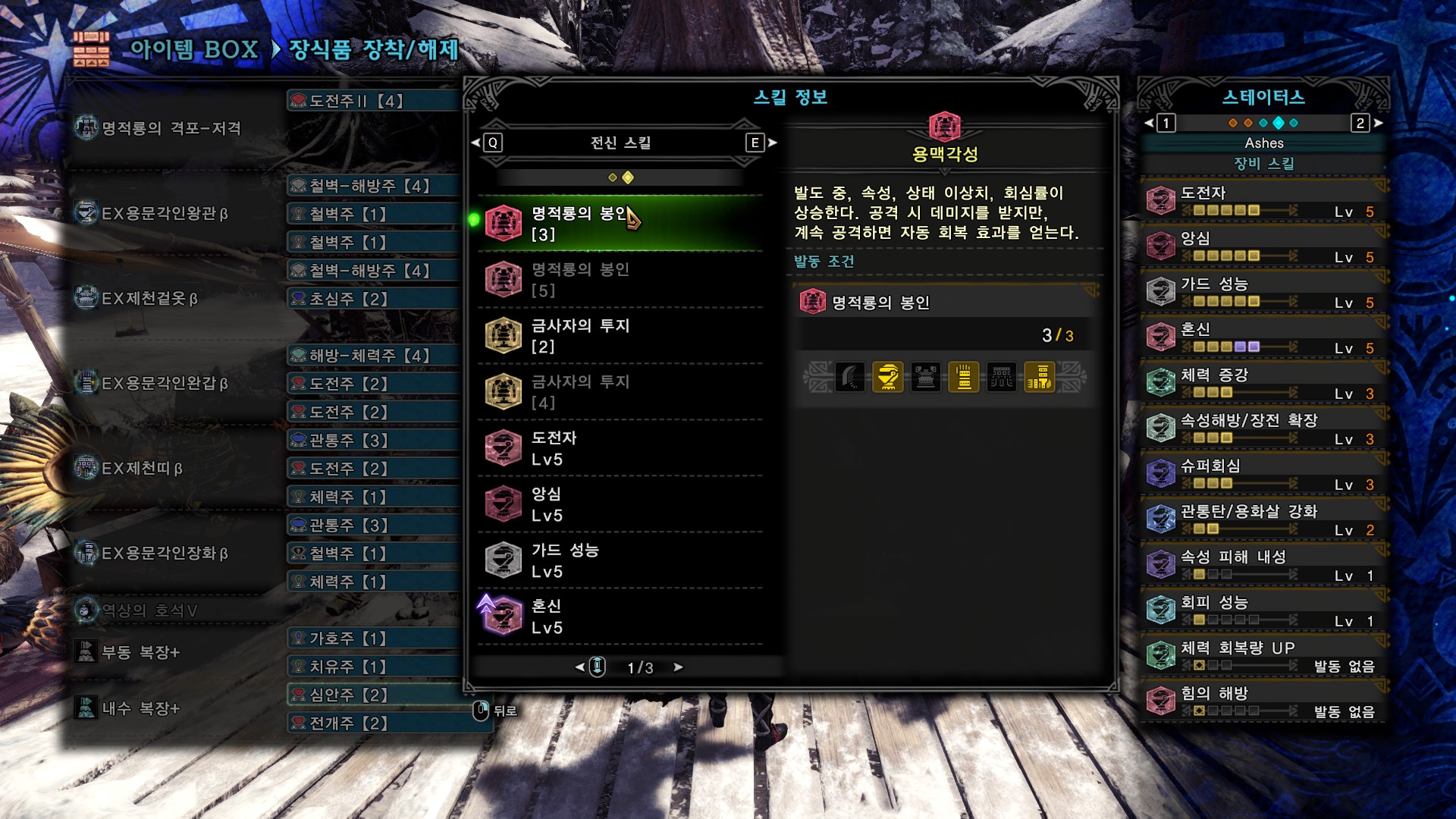 회심(%) : 23+20+40+5=83%, 분노시 5%추가, 힘의 해방 발동시 20%추가. 힘의 해방의 경우 용문셋때문에 발동 자체는 잘되는 편이고, 영상을 보면 아시겠지만 1분 정도의 공백기는 있습니다.