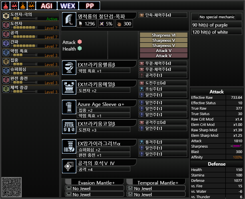 대검, 피리, 해머 외 타수가 많은 무기는 보라예리90타로는 부족하기 때문에 예6공5555로 각성을 하고, 멸진룡 무기처럼 쓰는게 낫습니다.