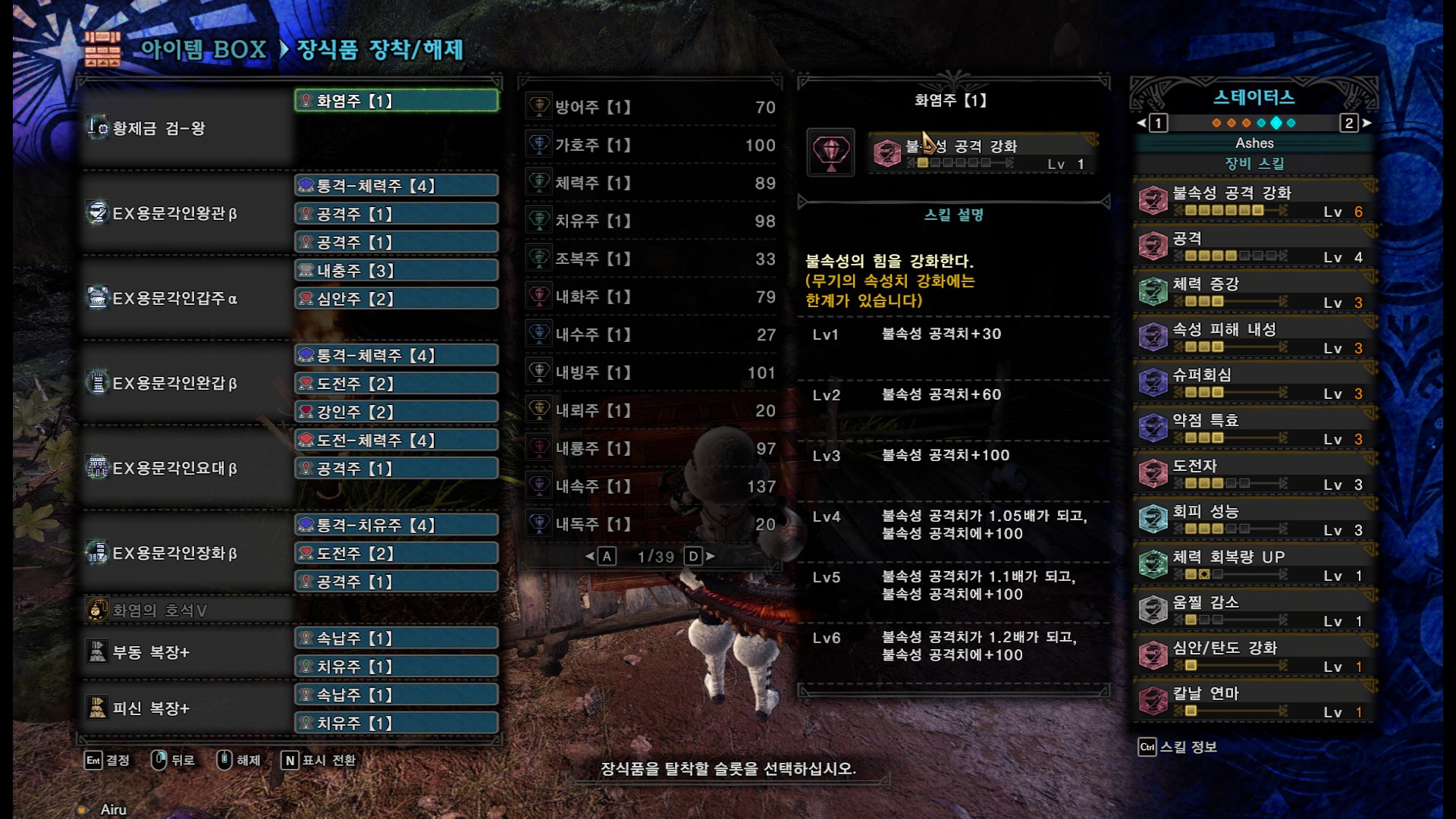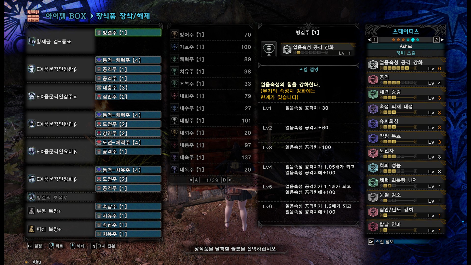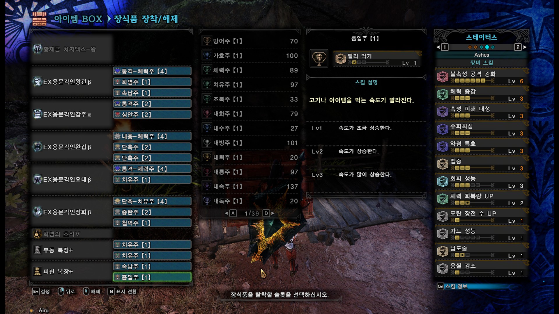 1슬롯이 여러개 남던데 괜찮은게 없어서 속납주나 치유주를 더 넣었습니다.