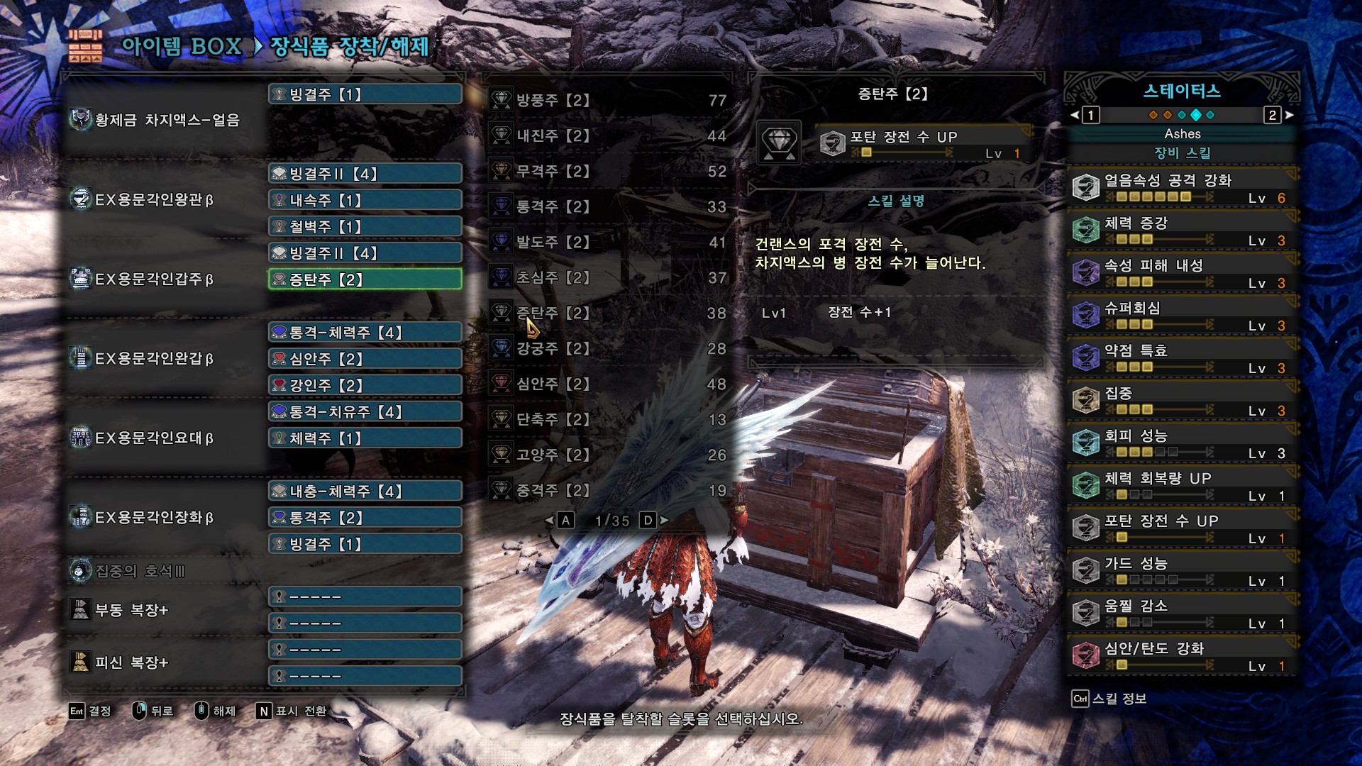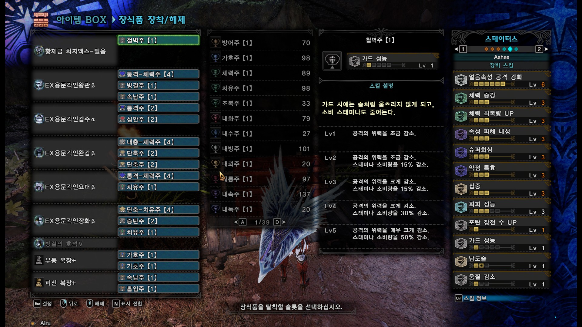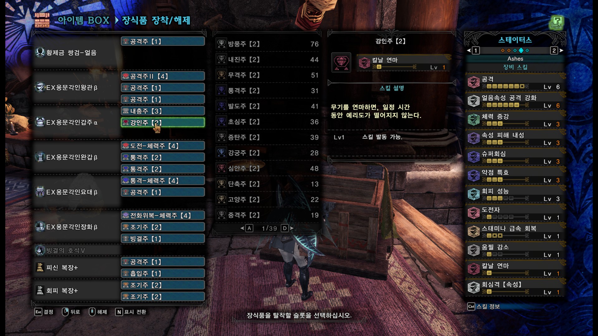 1슬롯이 여러개 남던데 괜찮은게 없어서 속납주나 치유주를 더 넣었습니다.