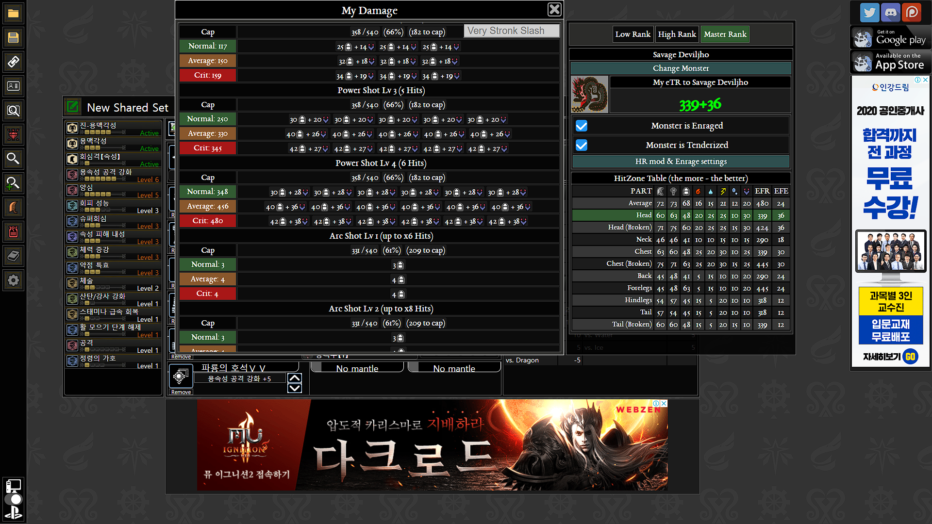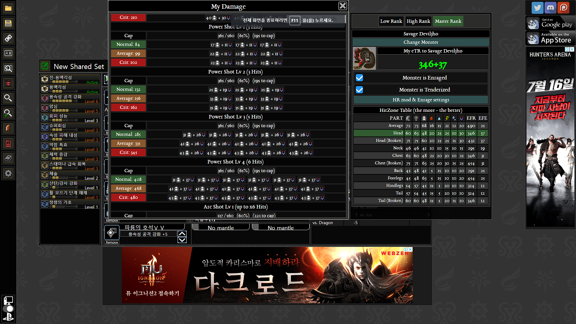두 무기 모두 버프는 동일+몬스터 분노+상처+머리를 쳤을때의 기댓값은 다음과 같습니다.