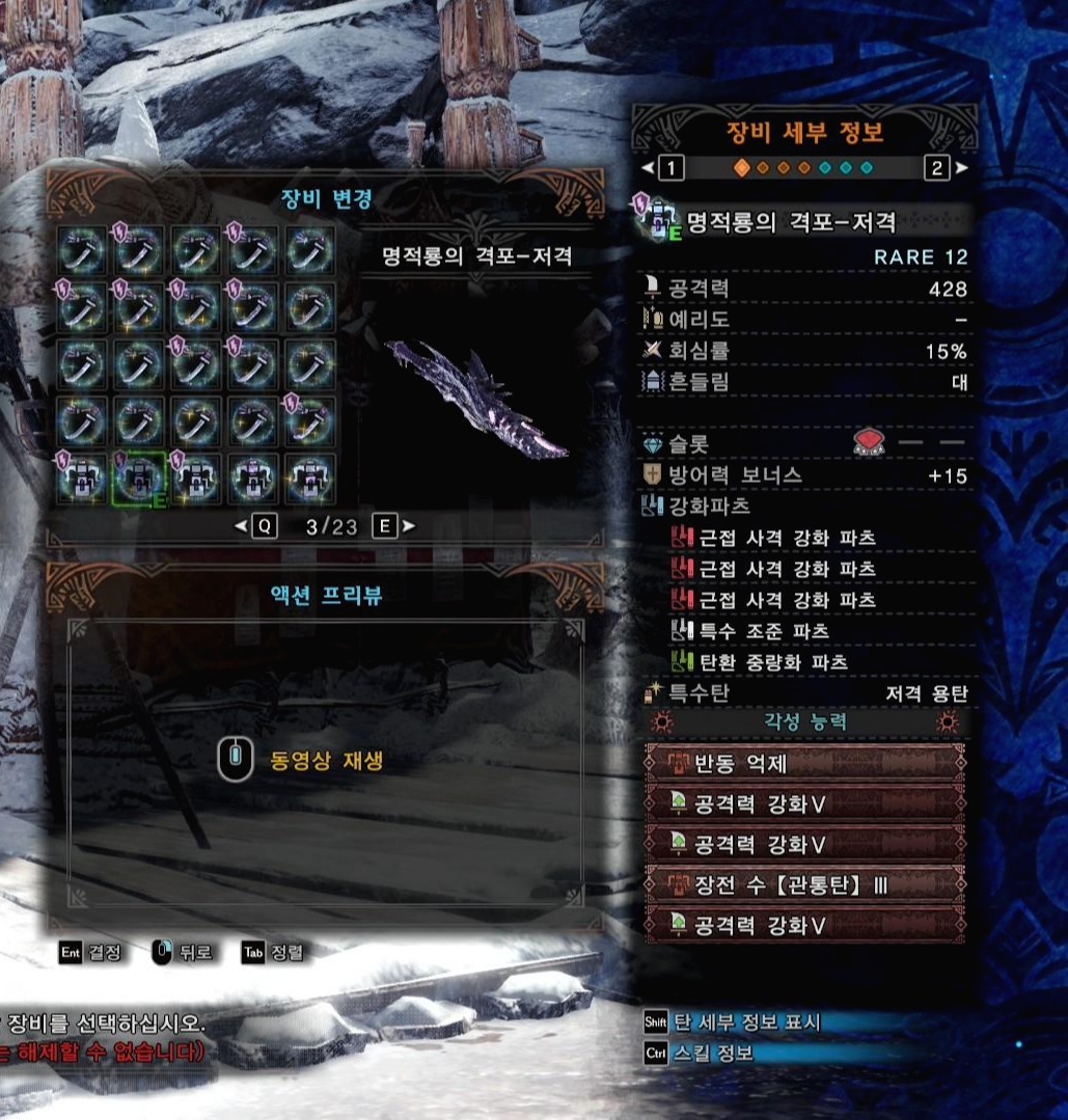 월드>아이스본으로 넘어가면서 확산탄은 사지를 잘라놓고, 맘타로트나 알바트리온으로 활 상성을 조져놨죠. 그런데 헤보쪽은 무식한 수준의 특수조준 배율, 확산탄을 제외한 다른 탄종 소지수는 특별히 손을 안봤습니다. 발매후 상처수치나 모션배율 까지 건드린 무기들도 있지만, 반대로 무관심(조충곤)인 무기들도 있고, 불쌍한 무기(랜스)까지..무기 밸런싱에 일관성이 없는 느낌입니다.