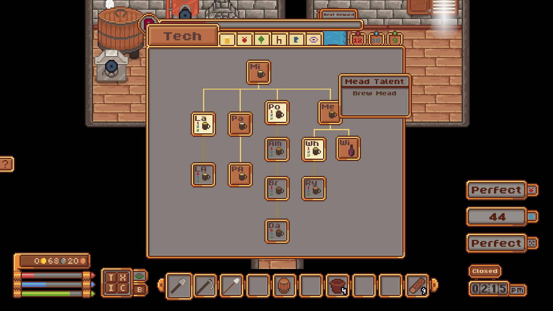 맥주를 양조하고 독한 술을 증류하며 와인을 만드세요. 완벽하게 만들어진 시원한 라거 또는 가장 독한 신주를 만드세요. 당신은 게임에서 일련의 음식, 술, 물건을 발견하고 만들 수 있어요. 긴 여정에서 얻은 경험으로 캐릭터를 업그레이드하고 정의할 수 있어요. 포인트로 자연, 건조, 요리, 양조, 사교 및 마법 테크놀로지 트리를 업그레이드하세요!
