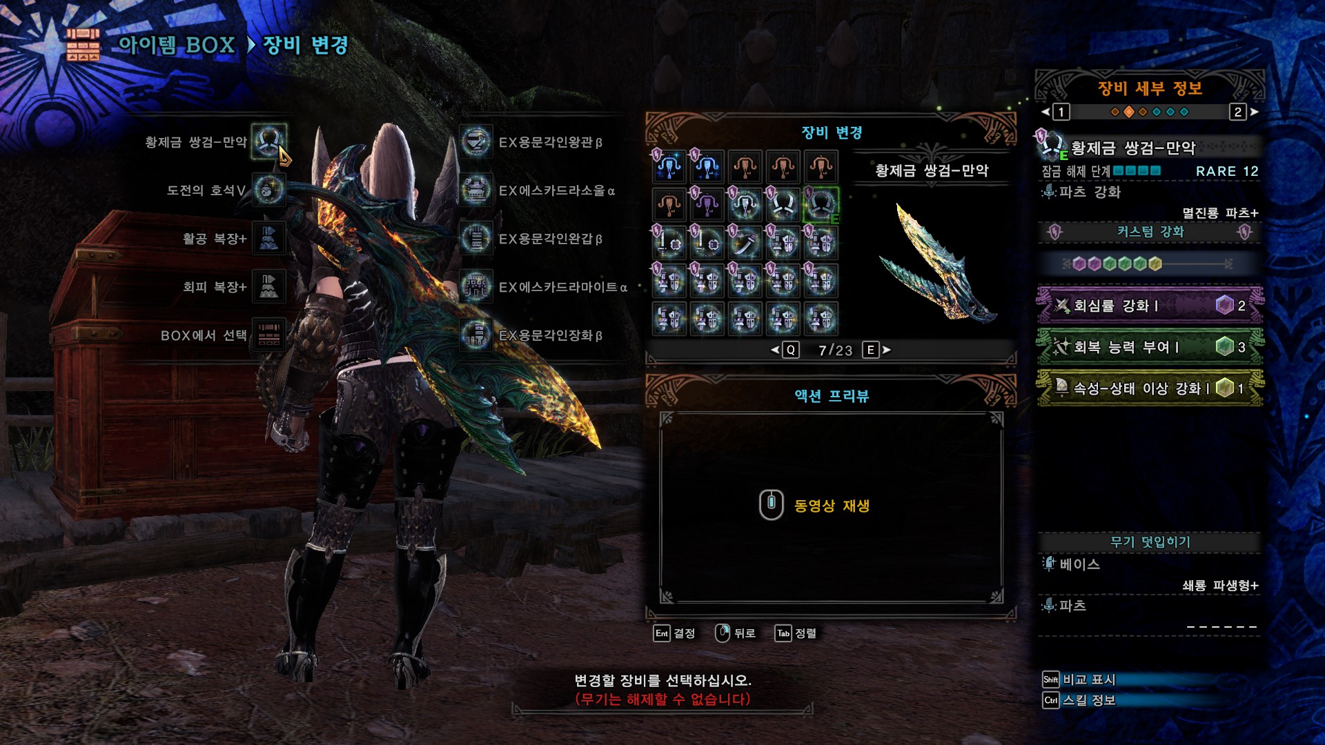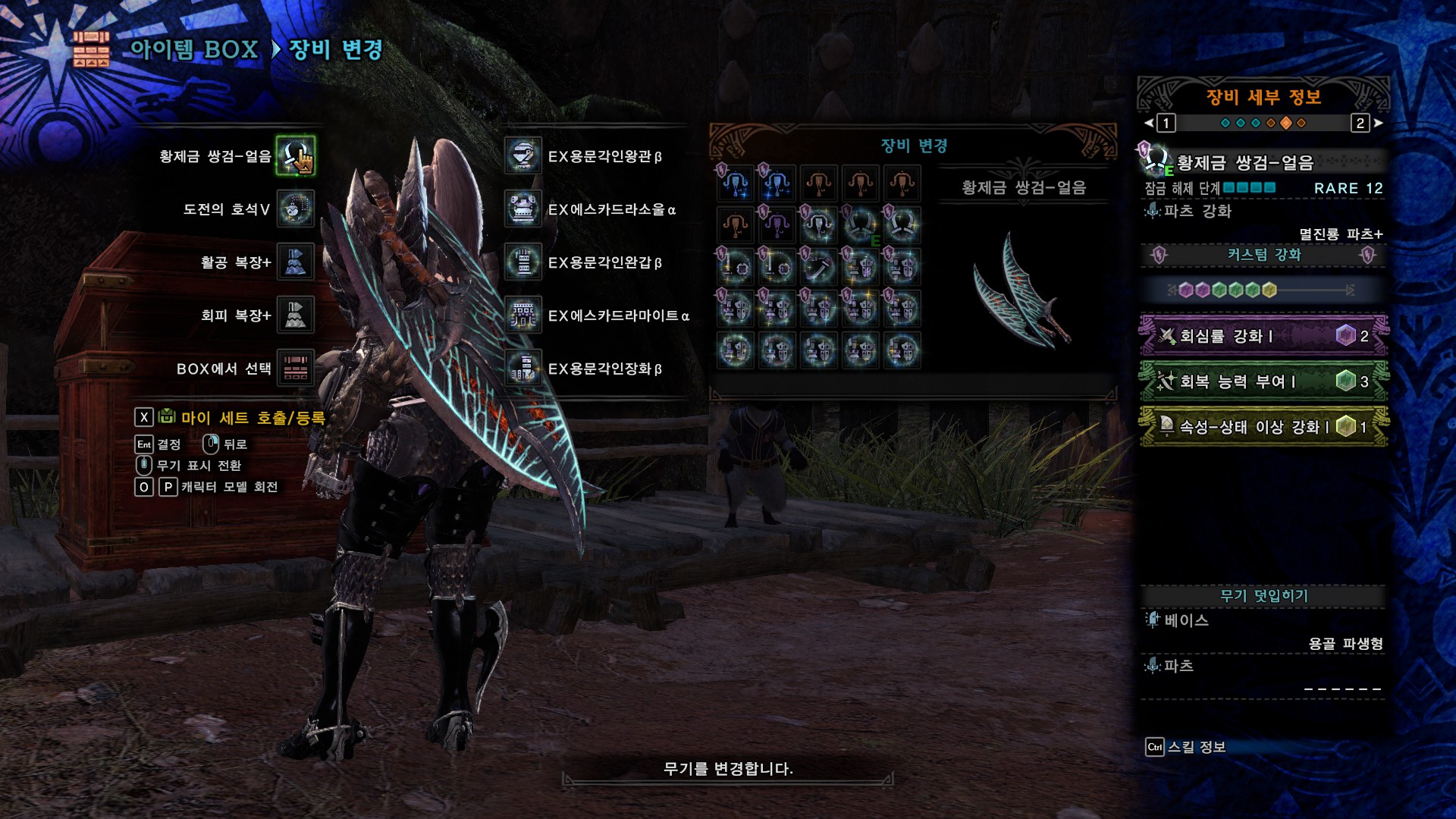 타수가 적은 무기(해매, 대검)들은 달인의 재주를 버려도 될 것 같습니다. 기존의 커스텀에서 획기적으로 바뀌는건 없지만, 아주 약간 단단해지고, 유틸을 한두개쯤 더 넣을 수 있는 차이가 있습니다. 예전에도 예5공6555하면 슬롯 남는 거는 비슷했습니다. 대검, 해머, 외에는 강화지속3때문에 슬액도 쓸만할 것 같네요.