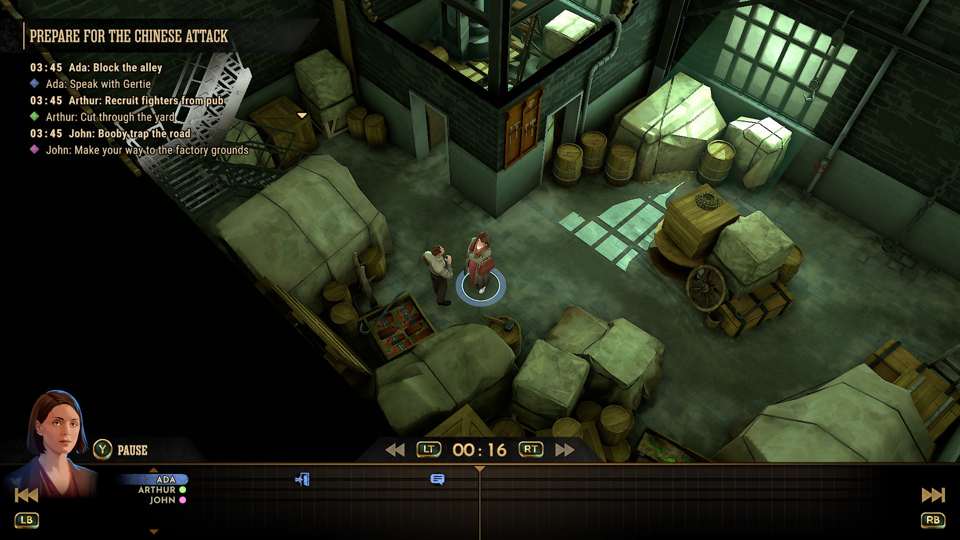 - 각 캐릭터의 활동은 자동으로 타임라인에 기록되며, 계획을 완벽하게 조정할 때까지 자유롭게 리셋, 빨리 감기 및 되감기를 할 수 있습니다.