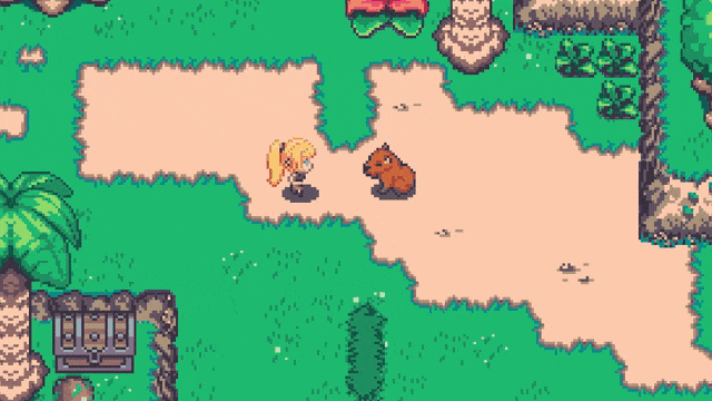 A top-down, 2D action RPG following the journey of an ambitious young treasure hunter and her capybara companion.