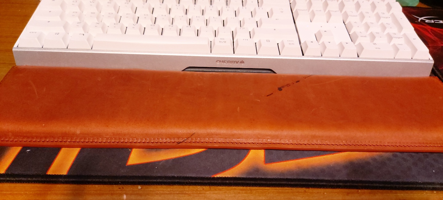 덱에서 파는 가죽 팜레스트를 참고해서 비슷하게 만들었습니다. 가로 440, 세로 110, 높이는 약 12~15mm(귀찮아서 버니어 캘리퍼스로 측정하진 않음).