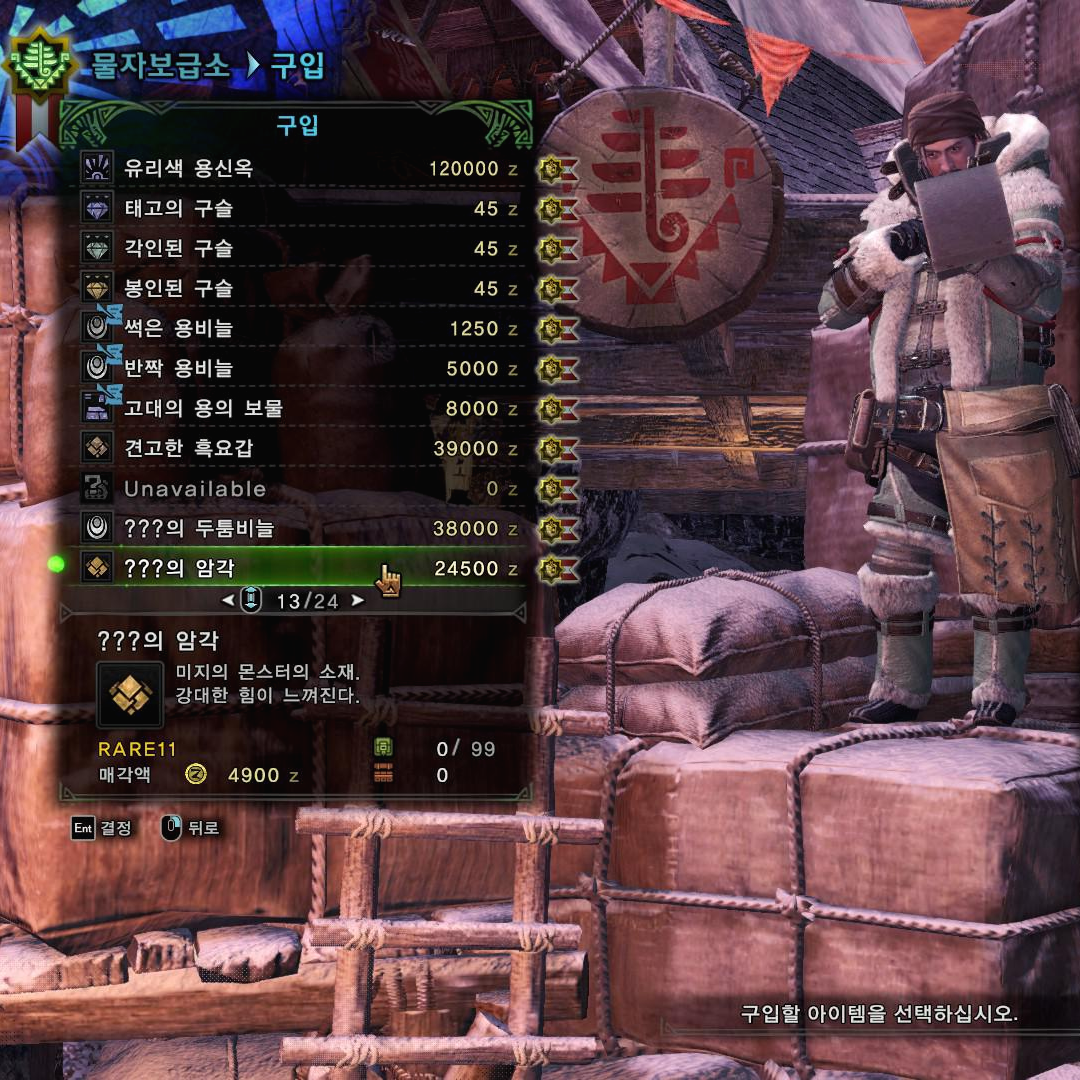 시한부 게임에 이제 와서 이런게 무슨 상관이냐고 해도 할 말이 없지만, 심심해서 상점모드 켜서 리스트 3개를 돌려봤습니다. 둘러보기 전에는 녹크샬, 역전 무페토(강용빛광석), 키린 아종에 플러스 알파 정도 있지 않을까 했었는데, 생각보다 더미데이터가 많았습니다.
