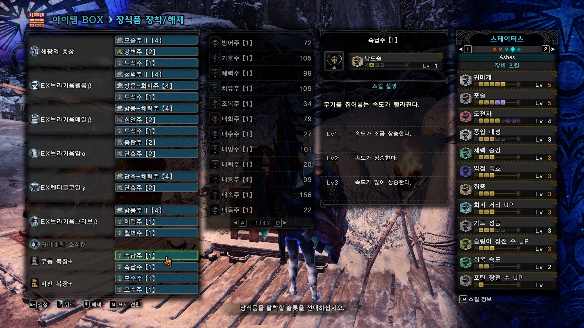 임신부라키는 패턴빨을 잘받으면 5분 중~후반대까지 나올 것 같긴 한데, 땅 짚고 빙글빙글 돌기 시작하면 리셋 마렵습니다. 애초에 건랜스가 폭딜을 넣을 수 무기라서 꾸준딜을 넣을 수 없는 패턴만 계속 나오면 힘들어지네요. 지역이동 하기 전에 묶어놓고 딜 넣어서 막페로 바로 보내는 게 제일 중요한데, 이때 아이루가 트롤하거나, 브라키가 말도 안되는 방향으로 누워버리는 경우가 많기도 하고