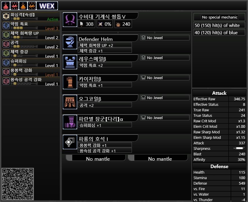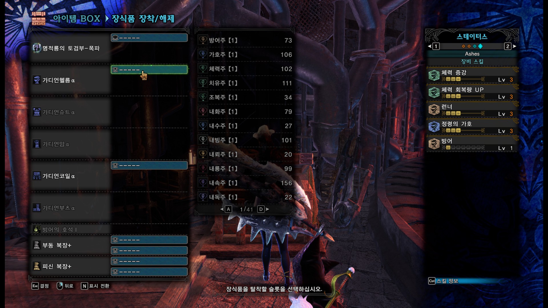공격력 스킬이 너무 부족하다 싶으면, 중간 중간 원하는 스킬이 달려 있는 방어구를 취사선택해서 진행하셔도 됩니다.