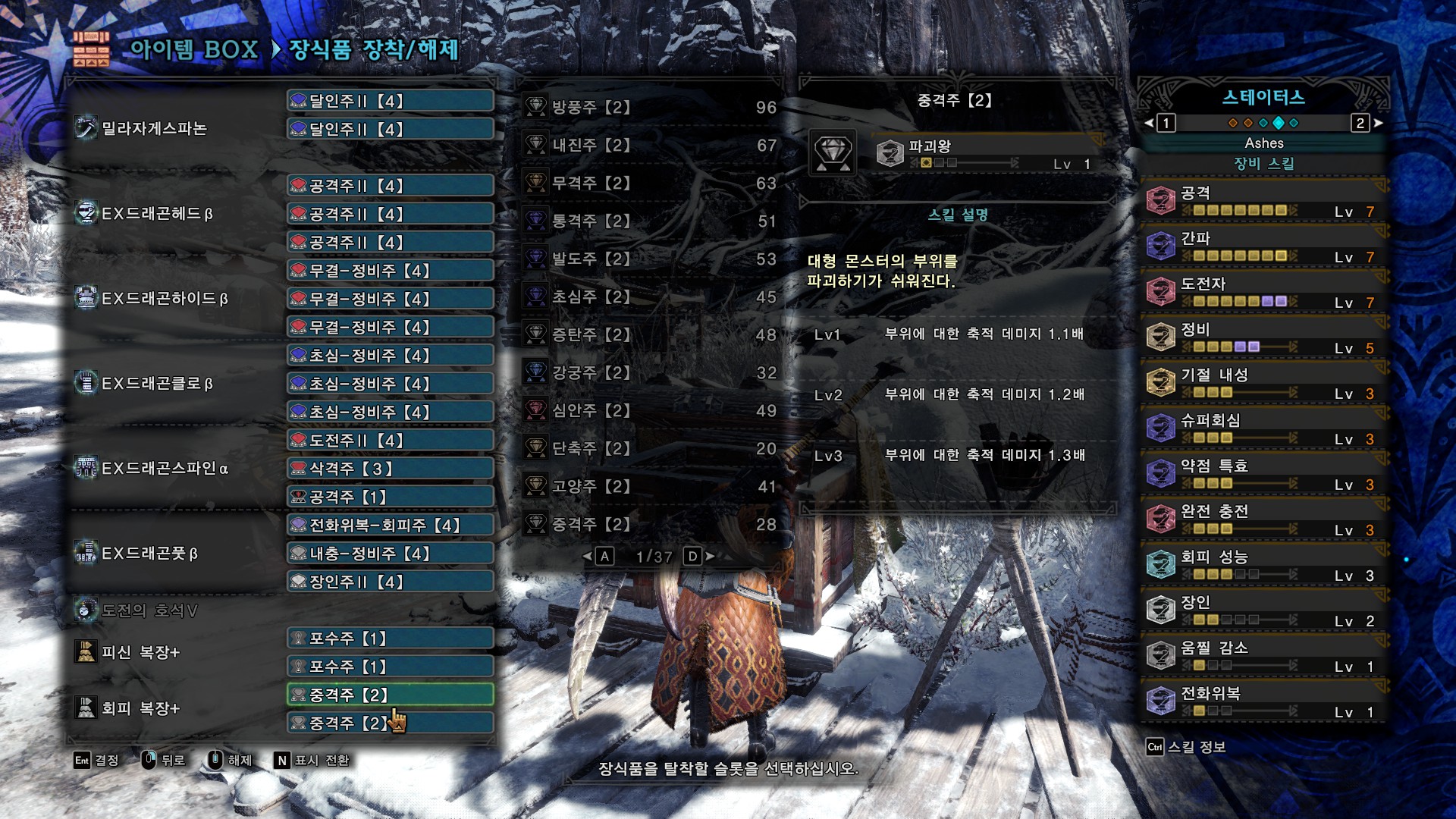 납도술3이 굳이 필요한가는 모르겠는데, 일단 넣었습니다. 치유주의 경우 넣을만한 복합 장식주가 딱히 없는 것 같아서 넣었습니다.