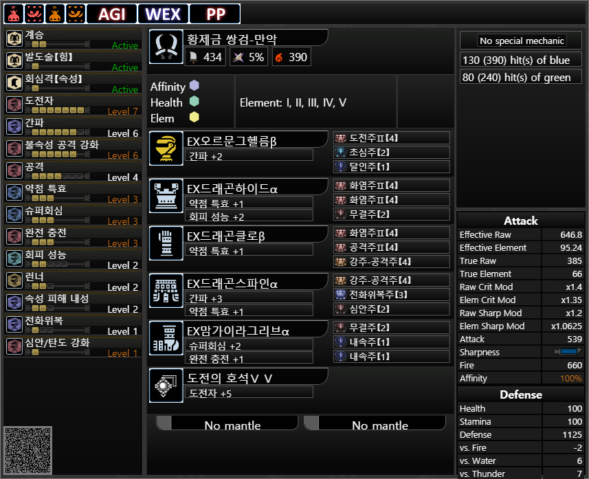 사실 황제금+드래곤셋보다 흑룡쌍인 이천+깡뎀 스킬 도배가 황제금 무기로 똥꼬쑈하는 것보다 더 쎌 것 같다는게 문제인데, 이거는 나중에 심심하면 몬스터 몇마리 골라서 시뮬레이터를 돌려볼 예정입니다.