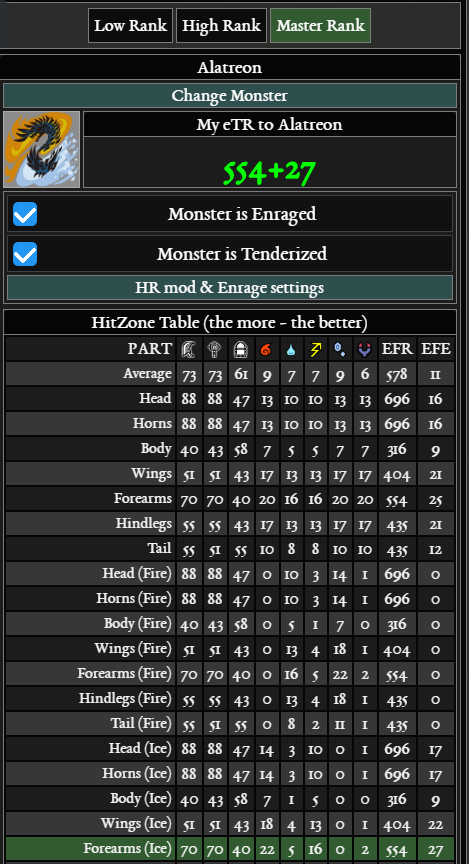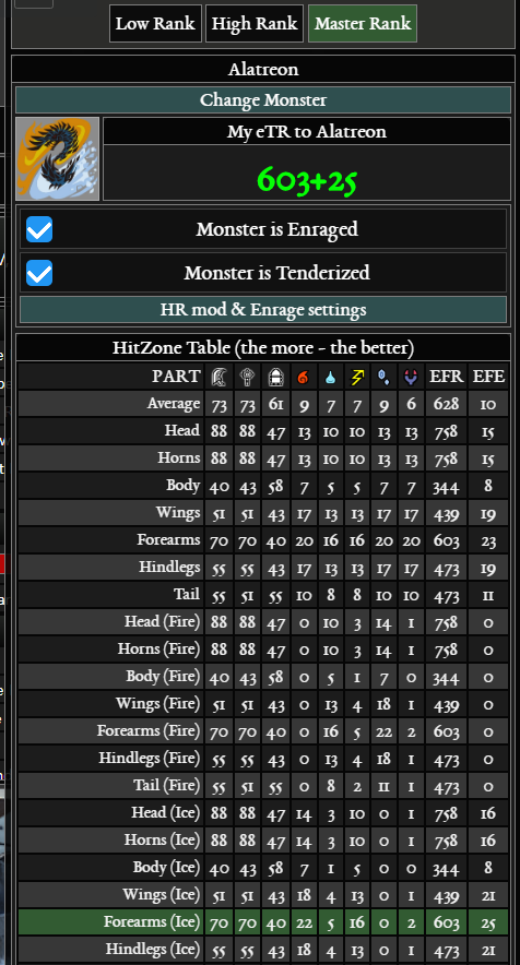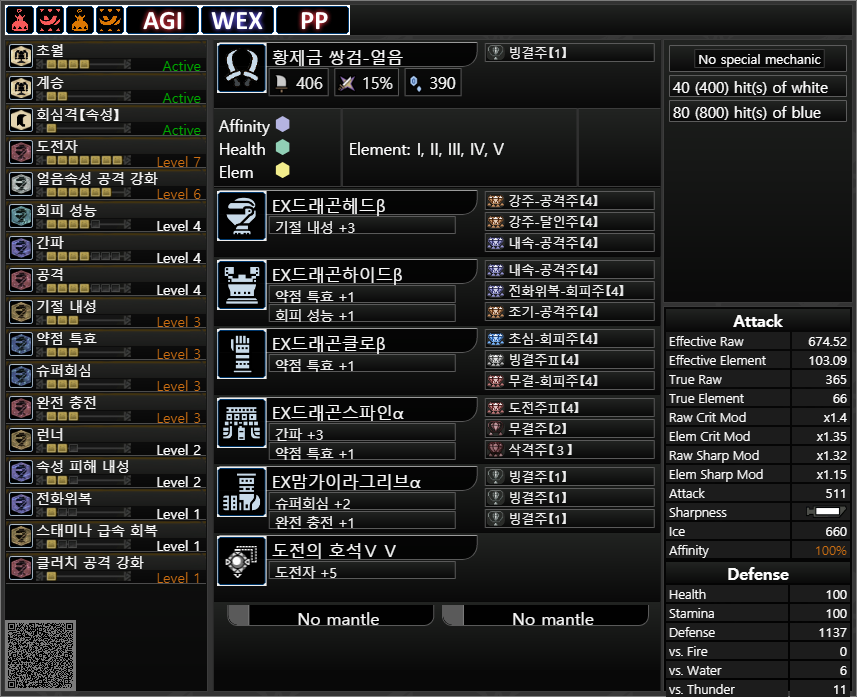 이하 이미지는 풀버프+얼음 알바+분노+앞발+상처를 기준으로 한 기 effective raw값 입니다. 이걸 한국말로 뭐라고 풀어 쓸 수 있었는데 기억이 안나네요. 대충 숫자만 봅시다.