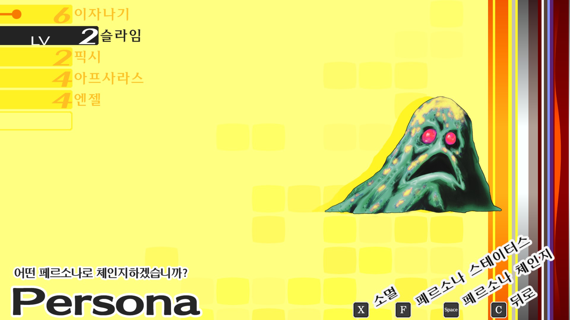 이름만 보면 이자나기가 다 쓸어버릴 것 같은데, 개구데기급 성능이라서 어떤 페르소나를 써야 되냐고 친구한테 물어보니 슬라임을 쓰라고...생김새가 쟈코인데, 성능과 외견이 반비례하는 게임인건지도