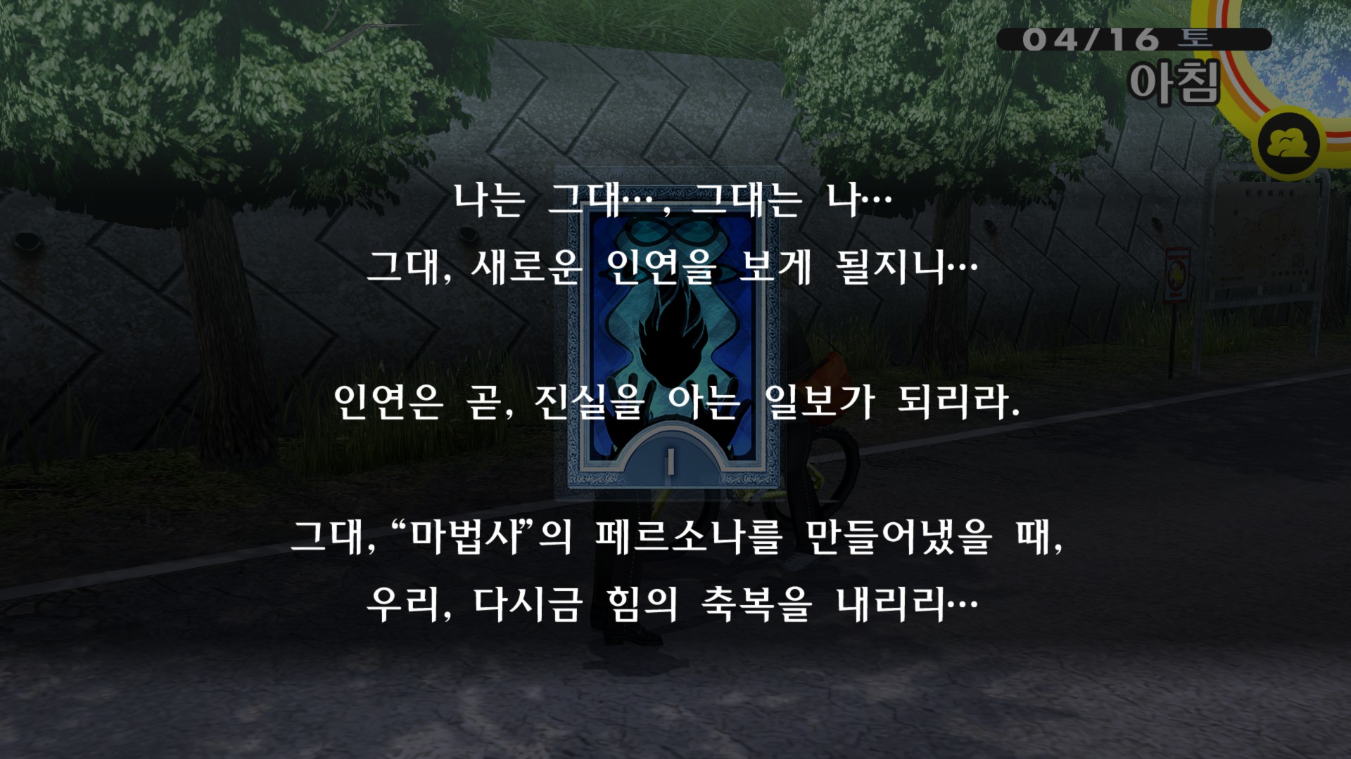 -주요 등장인물들은 모두 각각에 대응하는 타로카드가 있다. 주인공은 자신이 자신의 커뮤니티를 올릴 수는 없기 때문에 직접적으로 배정되진 않았지만, 게임의 시나리오나 "이자나기"의 커뮤니티로 봐서 광대 카드라고 할 수 있다. 광대 카드의 숫자는 0번, 시작의 숫자이며 "세계를 여행하는 다른 세계에서 온 왕자인 동시에 경험을 쌓기 위해 세계를 유랑하는 영혼"을 뜻하며, 광대는 마지막 여정을 통해서 궁극적으로는 세계로 각성하는 카드라고 한다(A.E 웨이트). 물론 주인공 외에도 나마타메나 아다치 또한 광대로 볼 수 있겠지만, 이들은 여정을 완수하지 못한 광대들이다.