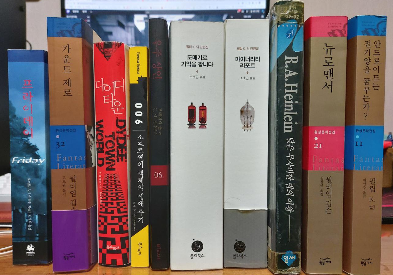 대충 다이디 타운, 소프트웨어 객체의 생애주기(테드창의 다른 작품집에 다 들어가있습니다), 달은 무자비한 밤의 여왕 정도는 지금...봐도 재밌을 수도 있고 없을 수도 있습니다 ㅎㅎ. 필립 K.딕의 두 단편집은 엮기가 좀 애매한데, 단편집의 대표작은 사이버펑크에 넣어도 될 것 같습니다.