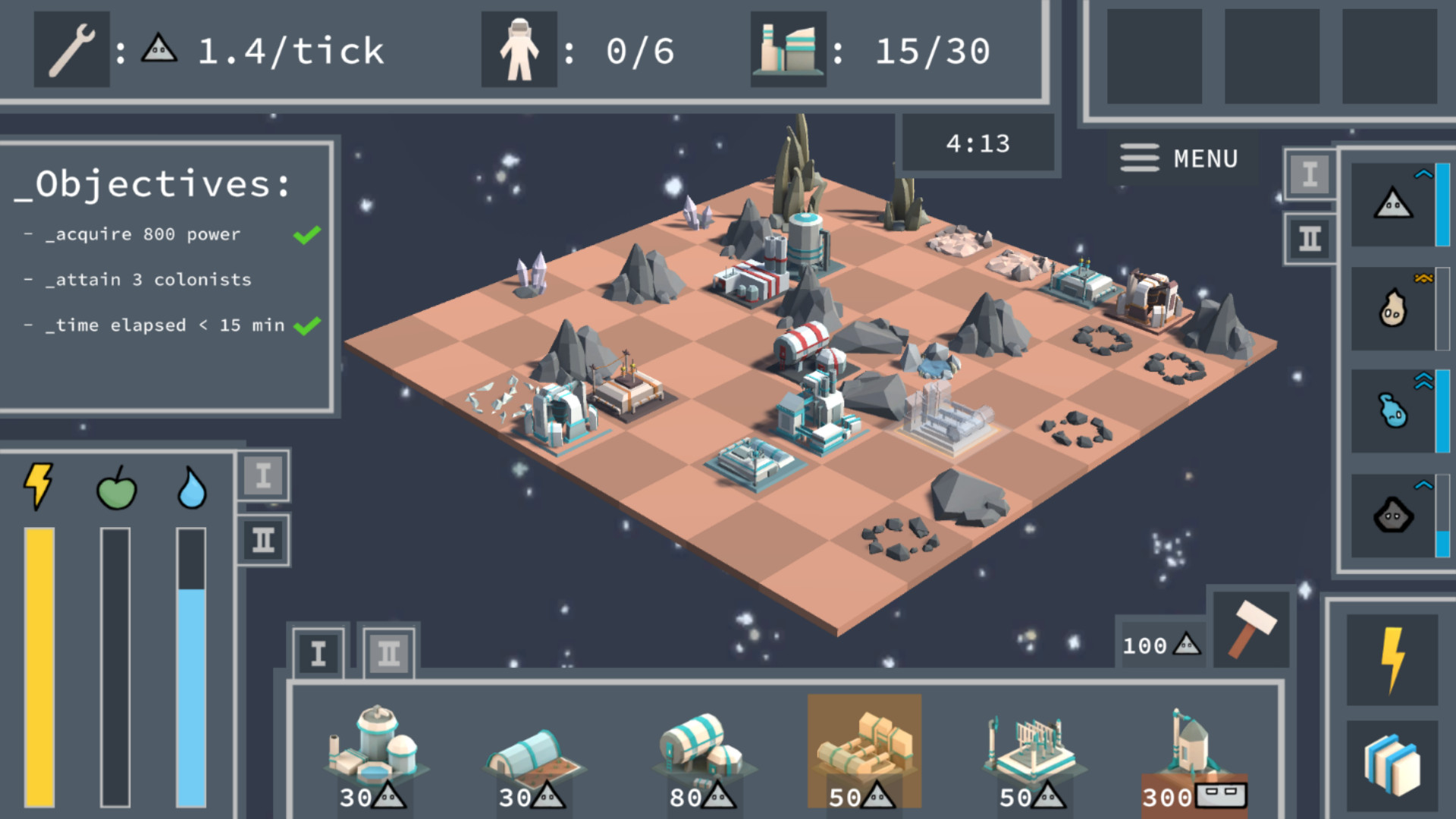 Play as a robot managing the needs of your colony in space! Build machines, harvest the elements, shelter colonists and launch rockets, in this colony building resource management game.