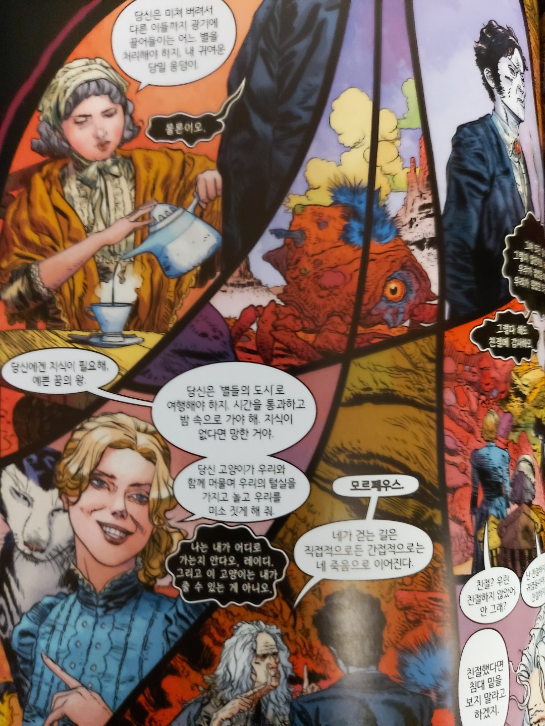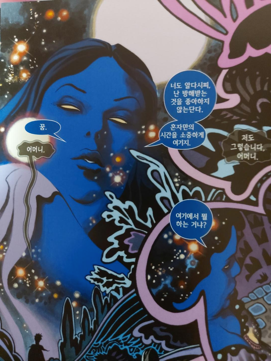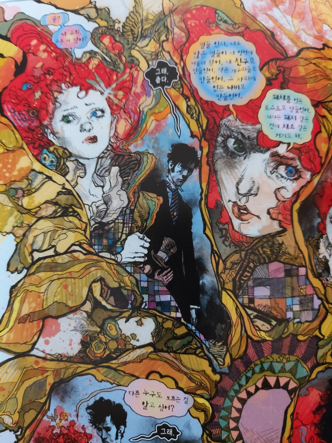 연재 당시에 워낙 거창하게 광고를 때렸던 것 같은데, 막상 읽어본 느낌은... 괜찮긴 하지만 꿈의 새로운 일면은 찾아볼 수 없었기 때문에 기존의 샌드맨에서 구축한 세계관과 캐릭터를 알지 못했다면 구매하지 않았을 것 같다. 그런 가정이 애초에 말이 안되긴 하지만, 단권으로서의 매력이 떨어진다는 뜻이다.