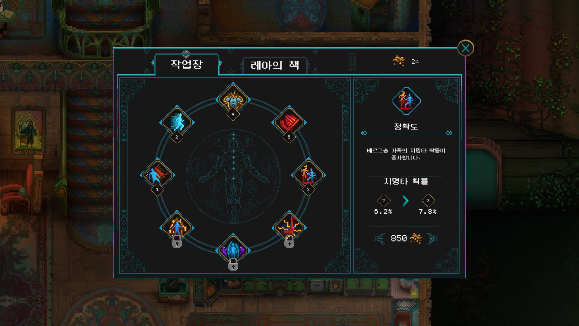 특징 : 핵 앤 슬래쉬+로그라이트적 요소 첨가(죽으면 골드만 가지고 자택으로 영혼 사출)+노가다성 스킬 해금