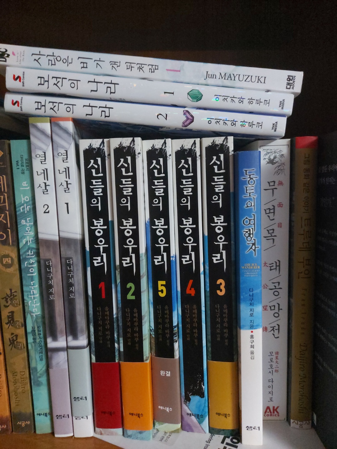 도련님의 시대도 완결이 되어있길래 찔금찔금 살 생각인데, 타니구치 지로에 관심이 있는 분들이라면 「신들의 봉우리」를 먼저 읽는걸 추천, 장편이 부담스럽다면 단편집, 「동토의 여행자」를 찍먹하는 것도 좋다(모든 단편들이 좋지만 송화루, 산으로, 가이요세섬, 이 세작품이 주제의식, 내러티브의 완성도가 뛰어나다). 「지구 빙해사기」는 느낌이 그냥 요상한 슈트 뒤집어쓴 변태들의 휴머니즘 한마당일 것 같아서 아직 읽어보지 않아서 뭐라 할말이 없고